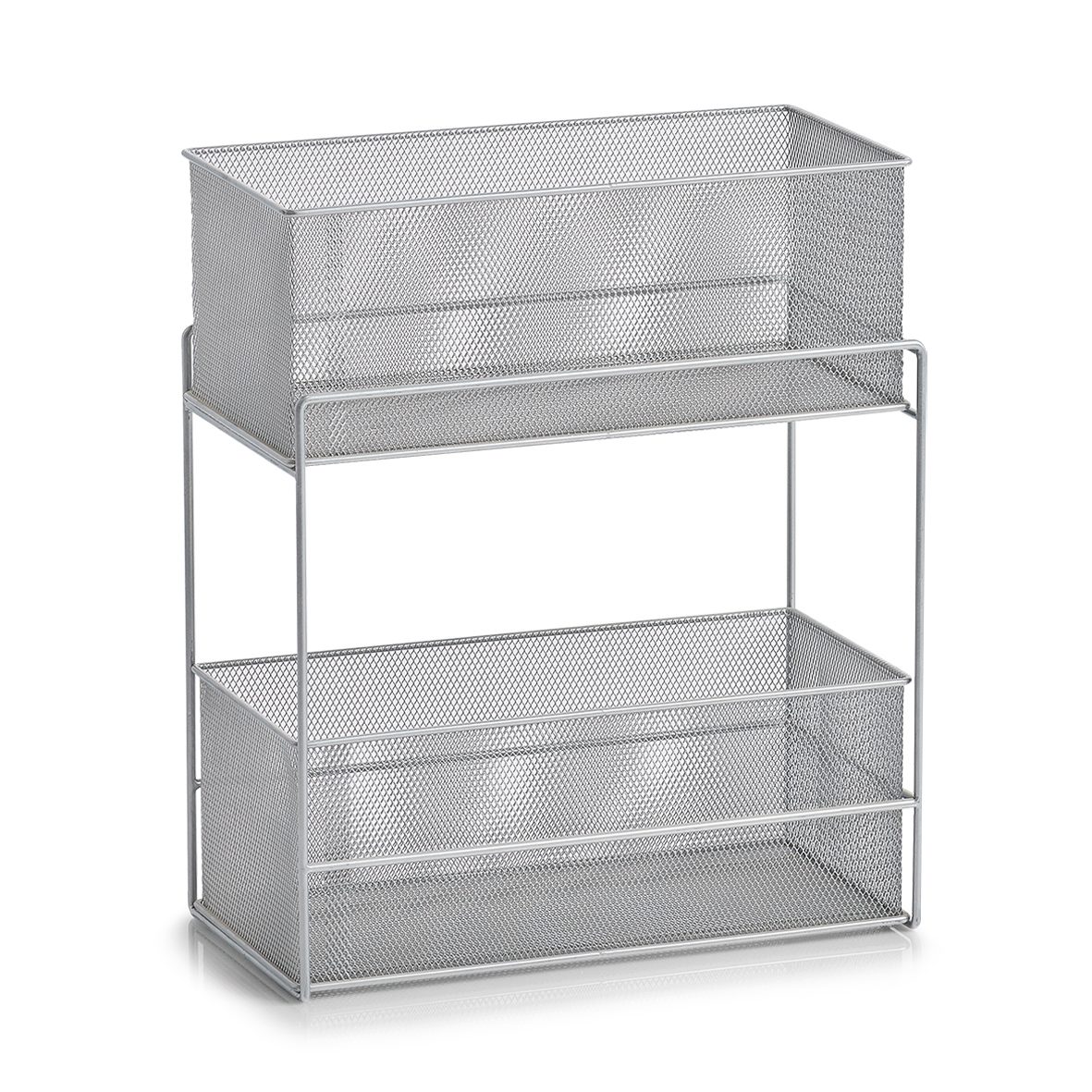 Dank diesem praktischen Etagenregal aus Stahlgeflecht mit zwei Körben aus Mesh gewinnen Sie wertvollen Stauraum in Ihrem Zuhause. Es schafft Ordnung in Ihren Schränken und Regalen und eignet sich ideal für den Einsatz in den Küchen-, Vorrats- oder Badschränken.