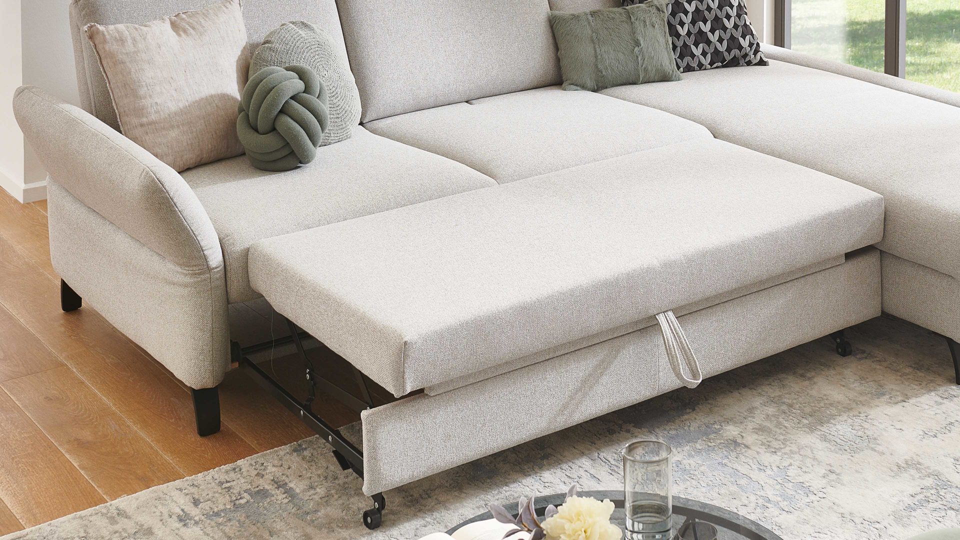 Tauchen Sie ein in pure Gemütlichkeit und lassen Sie sich von der manuellen Schlaffunktion aus dem Polsterprogramm Tiamo Plus begeistern - weil Komfort einfach Gold wert ist.