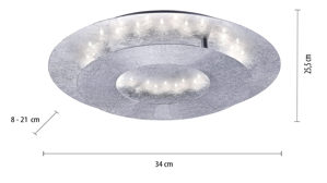 Gold oder Silber – in diesen edlen Farben gibt es die Deckenlampe des Herstellers Paul Neuhaus. Mit dieser Lampe aus silberfarbenem Metall erhalten Sie eine außergewöhnliche Lichtquelle für Ihr Wohnzimmer. Auch in Ihren Flur oder Eingangsbereich passt die LED-Deckenleuchte Nevis mit einem Durchmesser von ca. 27 cm. An der Deckenplatte befindet sich ein kleiner Ring mit einem Durchmesser von ca. 17 cm.