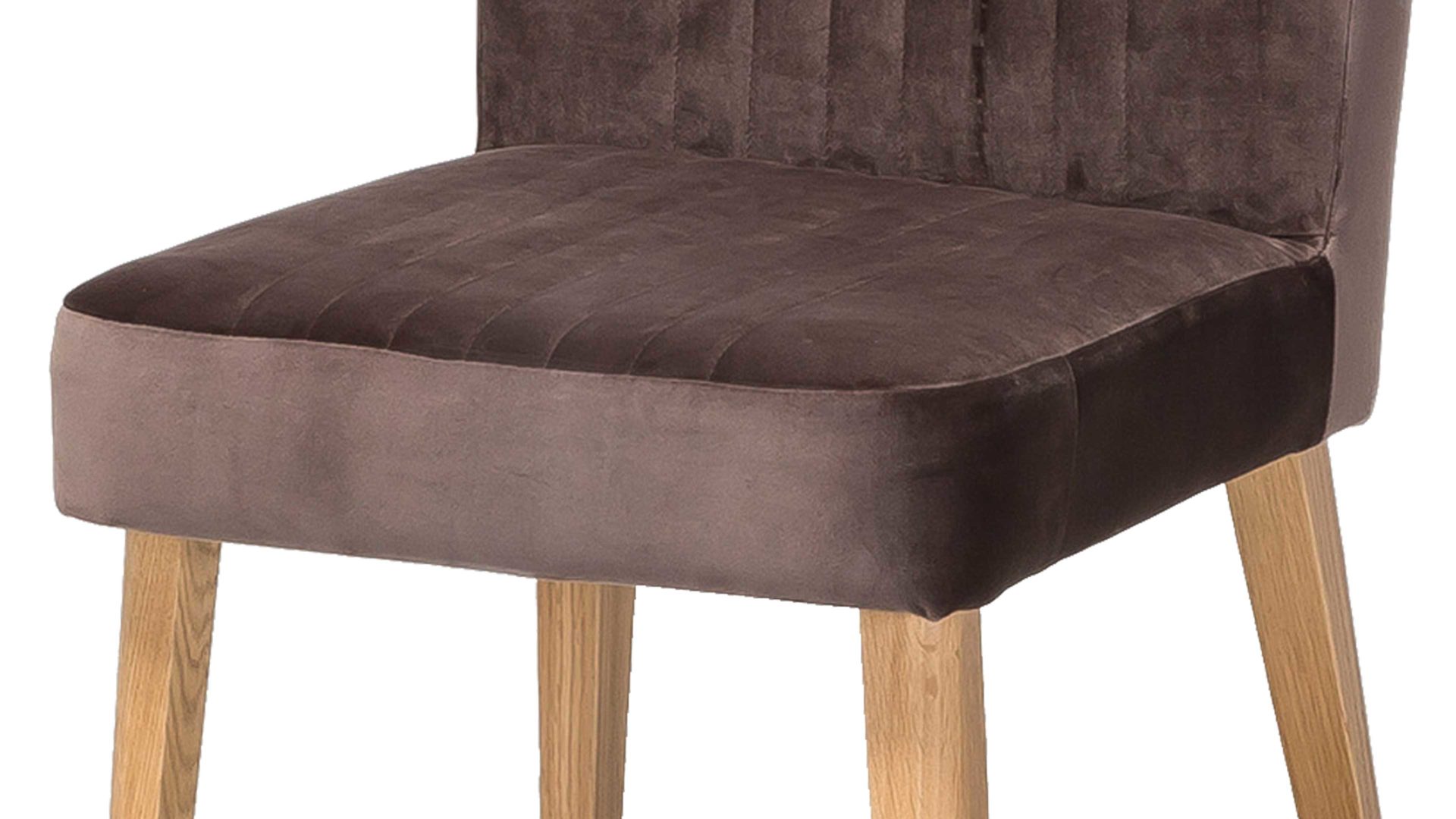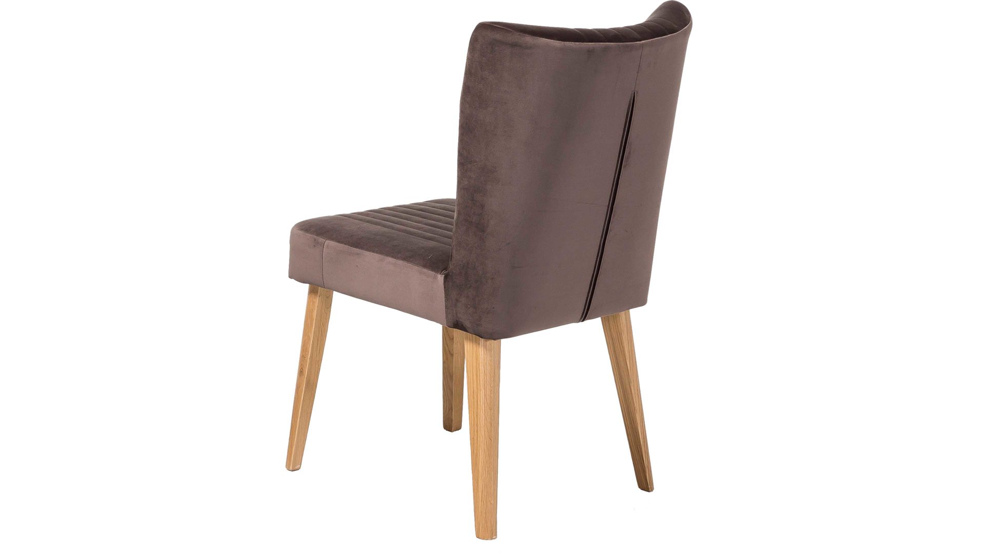 Im modernen Samtlook präsentiert sich dieser hochwertige Polsterstuhl mit braunem Bezug. Aufwendige Steppnähte, die auf Sitz und Rücken angebracht sind, verleihen dem Sitzmöbel eine raffinierte Optik. Stellen Sie den funktionalen Stuhl mit den Maßen von ca. 46 x 92 x 66 cm (BxHxT) am besten gleich zu mehreren an einen Esstisch aus Eiche, denn das Holzgestell des Sitzmöbels besteht ebenfalls aus Eiche natur.