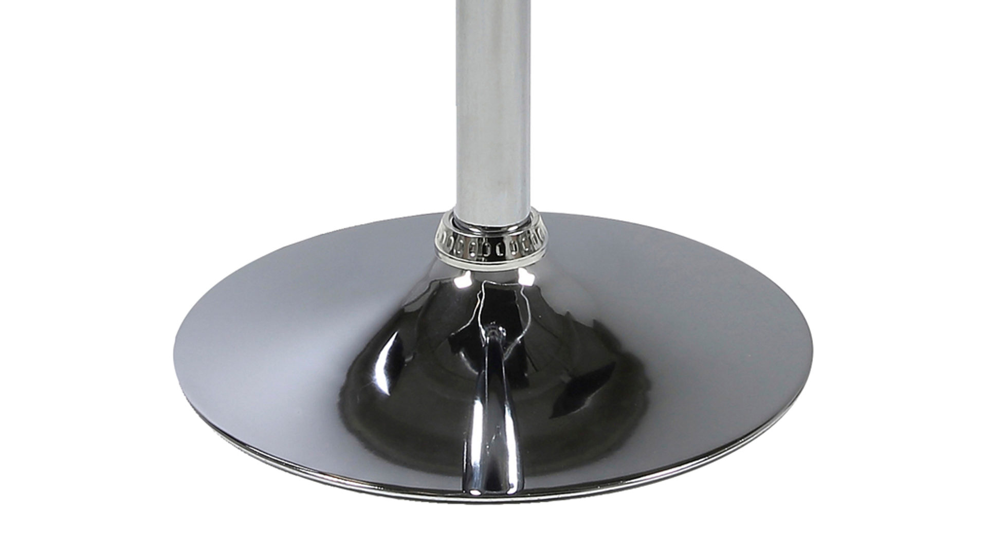 Dann ist dieser modische Barhocker Ihre erste Wahl. Der schlichte schwarze Kunstlederbezug gibt Ihnen die Freiheit, den Drehhocker mit Ihrem Einrichtungsstil zu kombinieren. Die hochwertig verarbeitete verchromte Fußstütze sorgt beim Sitzen für zusätzlichen Halt. Durch den verchromten Trompetenfuß erhält der Dreh-Barhocker ein zeitgemäßes Design.
