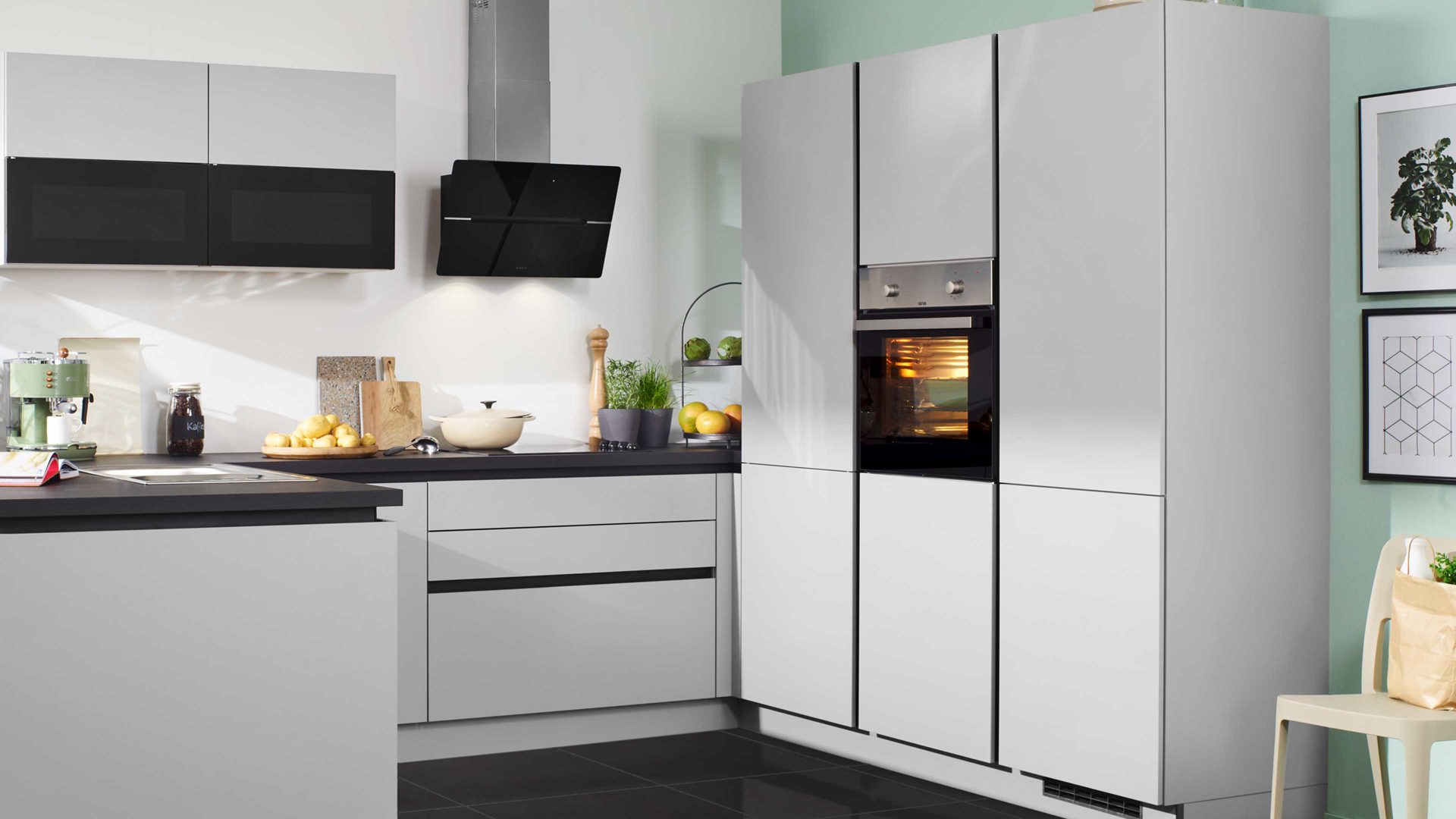 Stauraumschrank, hochgebauter Backofen und vollintegrierter Kühlschrank