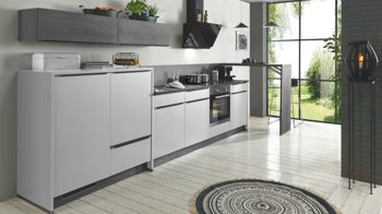 mattes Cremegrau, kombiniert mit grauer Eiche-Nachbildung