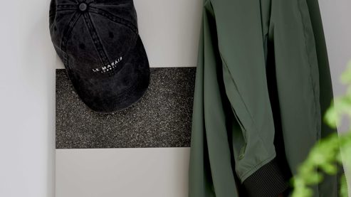 • Die Abbildung zeigt ein Wohnbeispiel, welches auch Dekoration sowie separat erhältliches Zubehör enthält. Im Lieferumfang enthalten ist eine Wandgarderobe INL-800 (rechts im Bild).