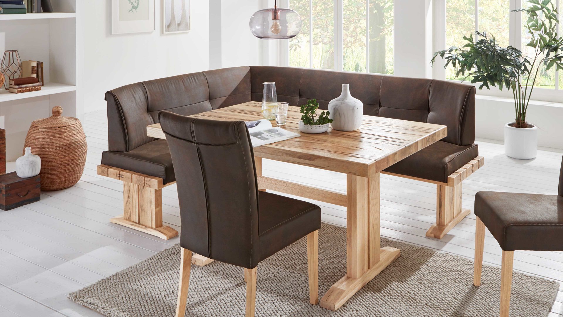 Eckbank, Stühle sowie weitere dargestellte Einrichtungsgegenstände sind separat gegen Mehrpreis bestellbar.