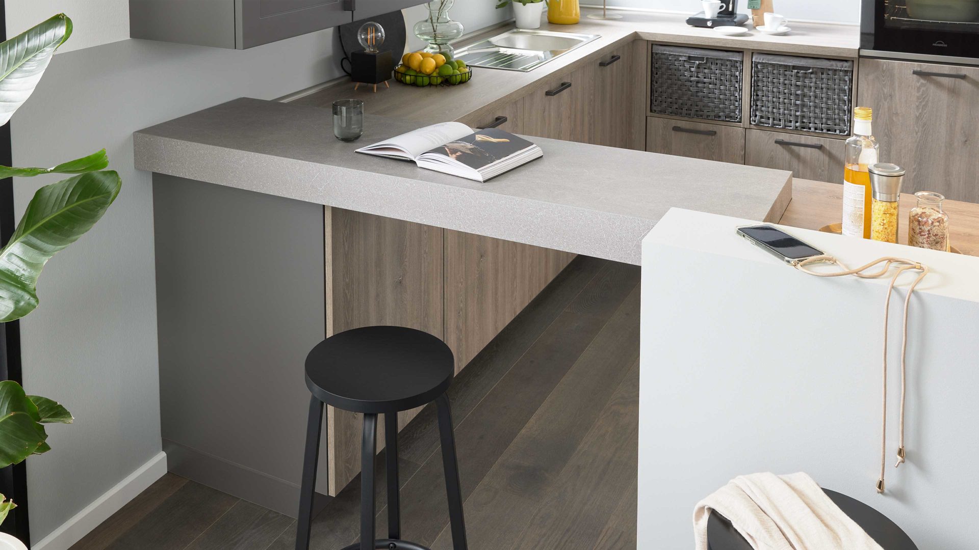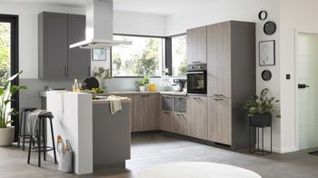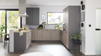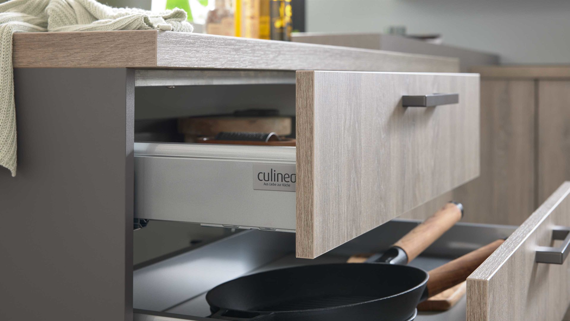 Culineo® Einbauküche C371 mit PROGRESS Einbaugeräten – stilvolles Design in Eiche und Schiefergrau