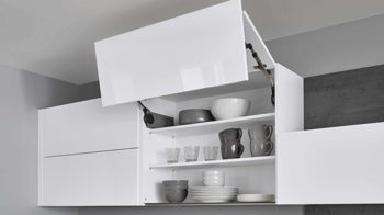 Die nobilia® Einbauküche Novalux überzeugt mit weißen grifflosen Hochglanz-Lackfronten und integrierten weißen Griffmulden. Das puristische Design wirkt modern, leicht und architektonisch klar.