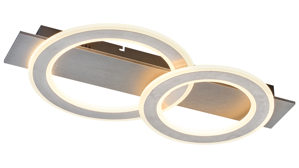 drei aufgesetzte grau gebürstete Metall-Lampenschirme, kombiniert mit opalfarbenem Acryl