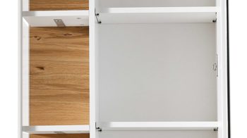 Bei VENJAKOB Sentino 3000 handelt es sich um ein edles, individuell ergänzbares Wohnprogramm Made in Germany. Die Rückwände sind gegen Mehrpreis auch in den Echtholzfurnieren Eiche rustico hell geölt, Wildeiche hell soft gebürstet geölt oder Fjord Fichte Grau erhältlich. Des Weiteren können Sie die Aluleisten statt weiß matt metallfarben bestellen. Zu den funktionalen Highlights der Serie gehören die Schubladen mit Vollauszügen, die Beschläge mit Selbsteinzug und Dämpfung sowie die bei allen Standtypen von innen höhenverstellbaren Stellfüße.