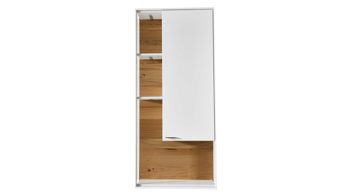 Hinter der Tür des Hängeschranks befinden sich zwei verstellbare Holzböden. Hinzu kommen zwei Böden für insgesamt drei Abstellflächen im sichtbaren Bereich. Damit bietet die spezielle Vitrine praktischen und stilvollen Stauraum für Gegenstände, die Sie licht- und staubgeschützt aufbewahren oder aber gelungen in Szene setzen wollen. Die Maße des Schranks betragen ca. 62 x 139 x 33 cm (BxHxT). Er wird Ihnen bereits fertig montiert geliefert. Eine stimmungsvolle LED-Beleuchtung fungiert als optionales Zubehör.