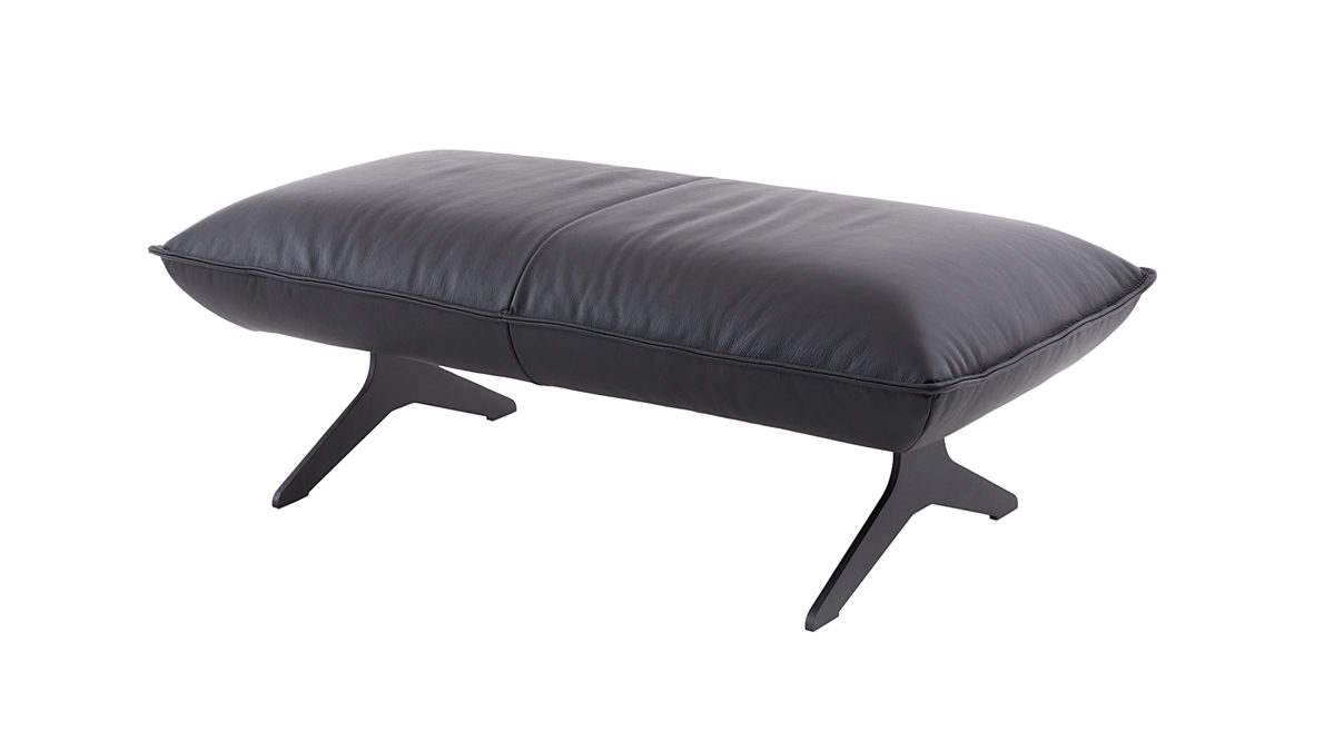 schwarzer Lederbezug, kombiniert mit schwarzen Metallkufen