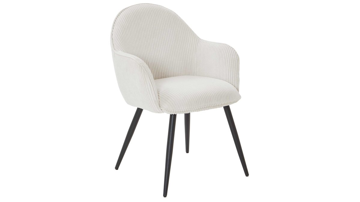 cremefarbener Breitcordbezug und schwarz pulverbeschichtete Metallfüße