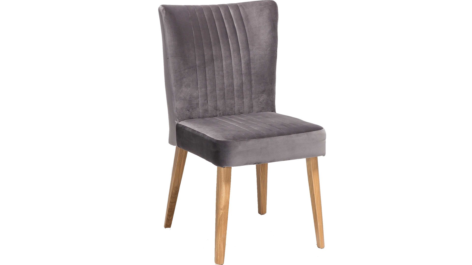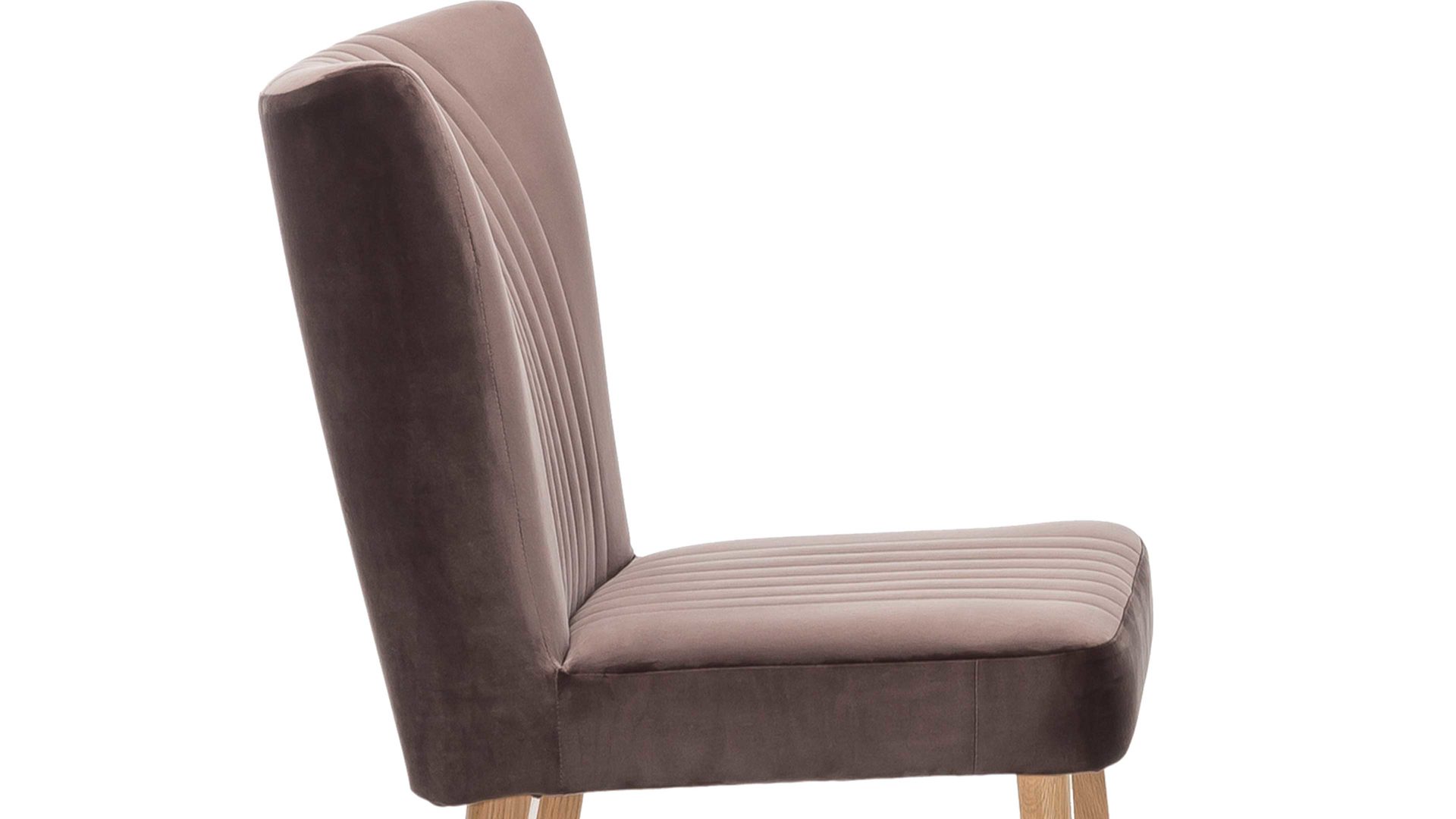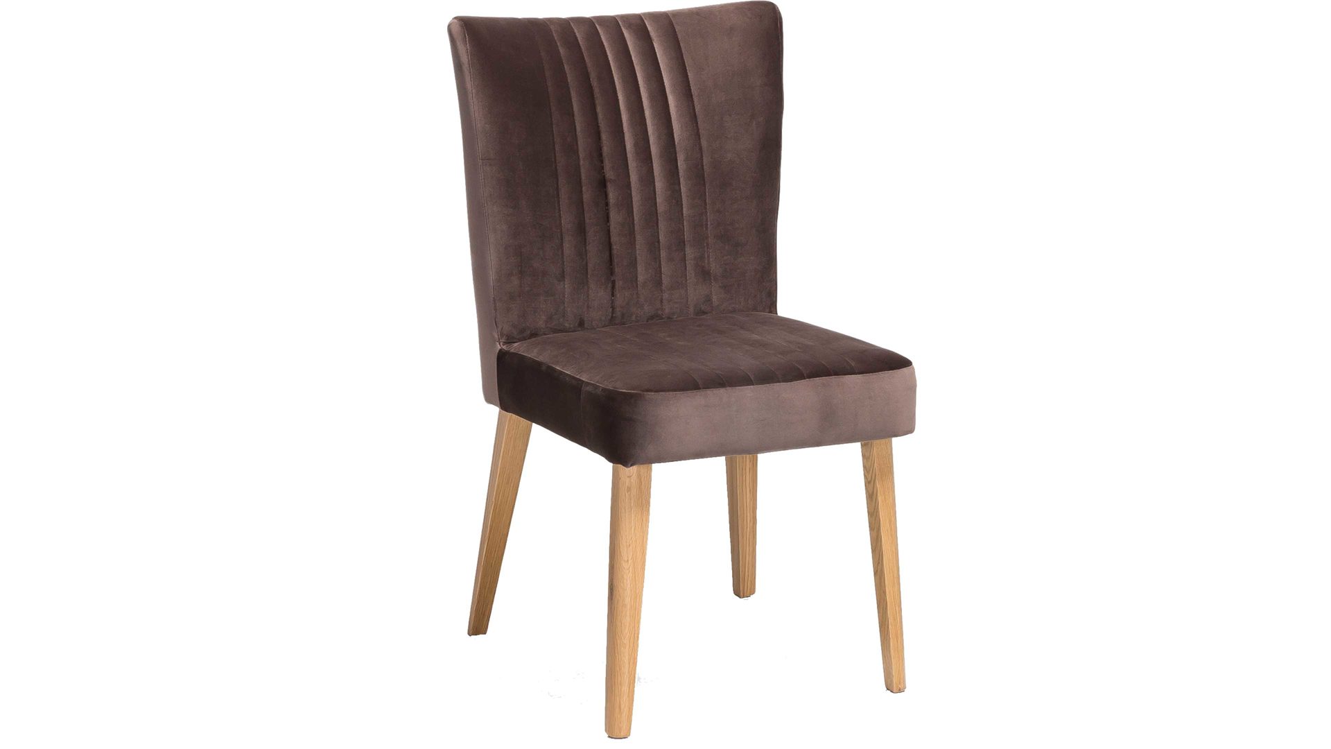 Im modernen Samtlook präsentiert sich dieser hochwertige Polsterstuhl mit braunem Bezug. Aufwendige Steppnähte, die auf Sitz und Rücken angebracht sind, verleihen dem Sitzmöbel eine raffinierte Optik. Stellen Sie den funktionalen Stuhl mit den Maßen von ca. 46 x 92 x 66 cm (BxHxT) am besten gleich zu mehreren an einen Esstisch aus Eiche, denn das Holzgestell des Sitzmöbels besteht ebenfalls aus Eiche natur.