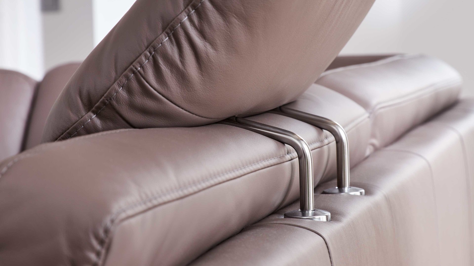 Die Comfortkopfstütze CKS mit Rasterbeschlag und Faltenoptimierung ist eine edle und praktische Mehrpreis-Ergänzung für die Sofas aus dem Modulmaster-Programm MM-PN1059. Optisch begeistert der moccafarben pigmentierte Lederbezug. Die robuste Kopfstützenvorrichtung besteht aus verchromtem Metall. Sie können die bequeme Kopfstütze manuell mehrfach in der Höhe und Neigung verstellen. Ihre Maße belaufen sich auf ca. 44 x 32 x 10 cm (BxHxT).