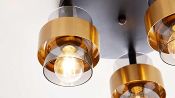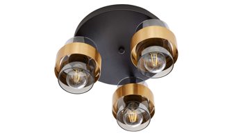 Die Deckenleuchte aus der Interliving Leuchten Serie 9333 begeistert mit einem modernen, extravaganten Design und bringt stilvolle Lichtakzente in dein Zuhause. Ihre Basis aus mattschwarzem Metall bildet einen spannenden Kontrast zu den drei rauchfarbenen Glasschirmen, die durch gebürstete messingfarbene Metallringe veredelt werden. Dieses harmonische Zusammenspiel aus Materialien und Farben verleiht der Lampe eine edle Ausstrahlung – ideal für Wohn-, Schlaf- oder Flurbereiche.