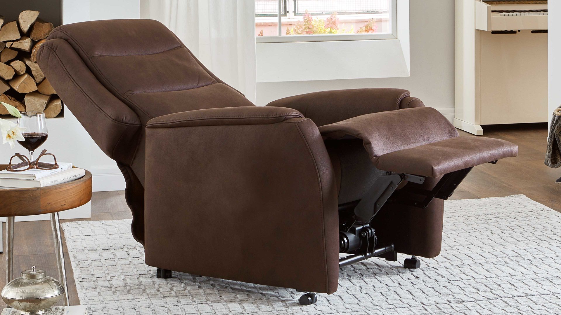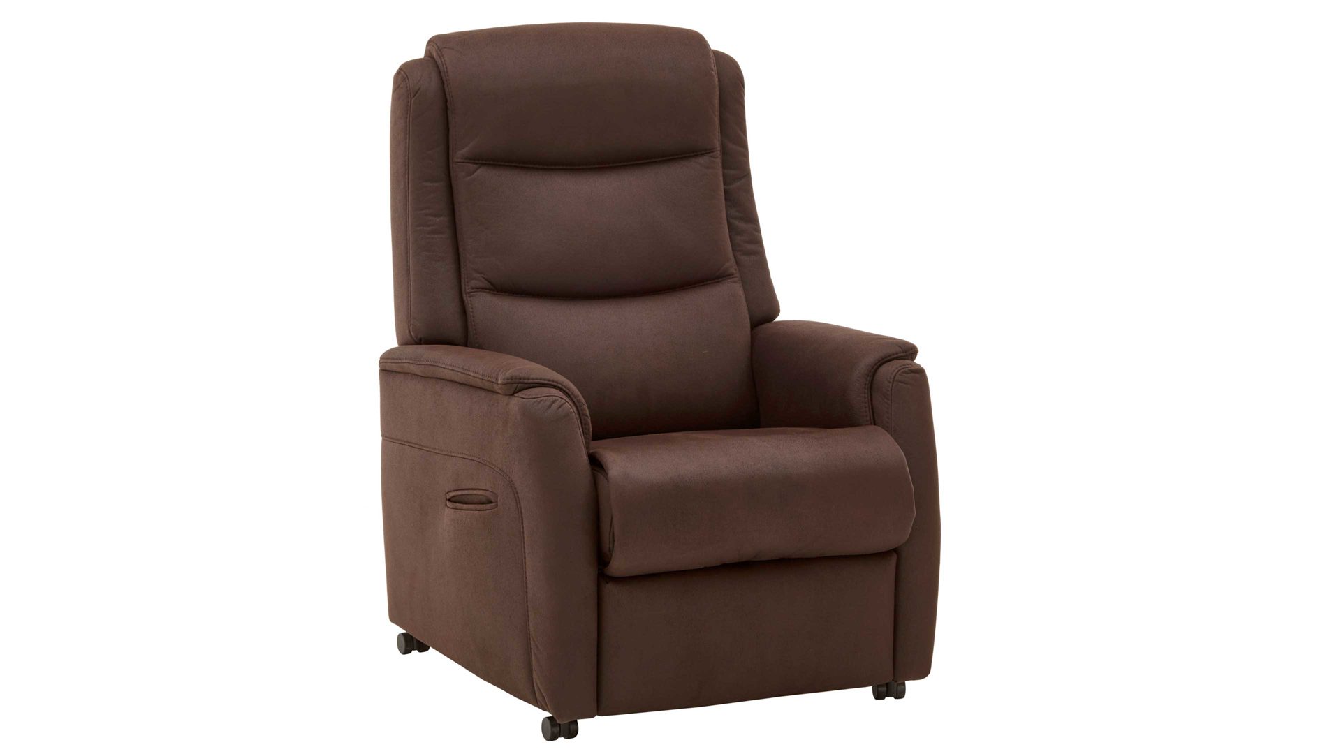 Der stilvoll designte TV-Sessel 01 aus der OrthoSedis Serie OS-HU1111 weist einen espressofarbenen Mikrofaserbezug auf, der moderne Eleganz ausstrahlt. Als Füße fungieren drehbare Doppelrollen, mit denen Sie den Sessel mühelos verschieben können.