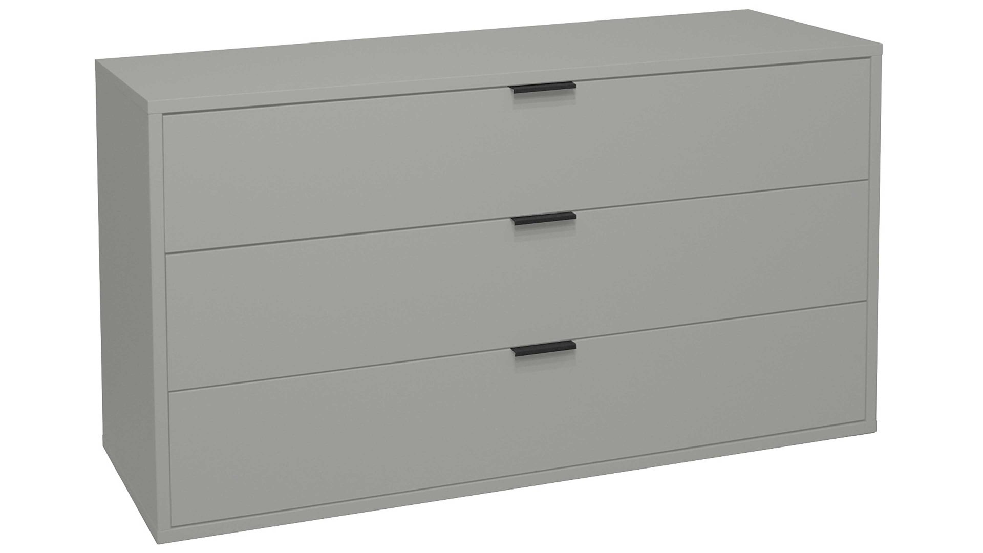 Mit ihren kreidegrauen Mattlackoberflächen verkörpert die Schubladenkommode Bonnie moderne Eleganz. Schwarze Metallgriffe und praktisch höhenverstellbare Möbelgleiter runden das stilvolle Design harmonisch ab. Zu den qualitativen Höhepunkten gehören überdies die widerstandsfähigen abgerundeten Dickkanten.