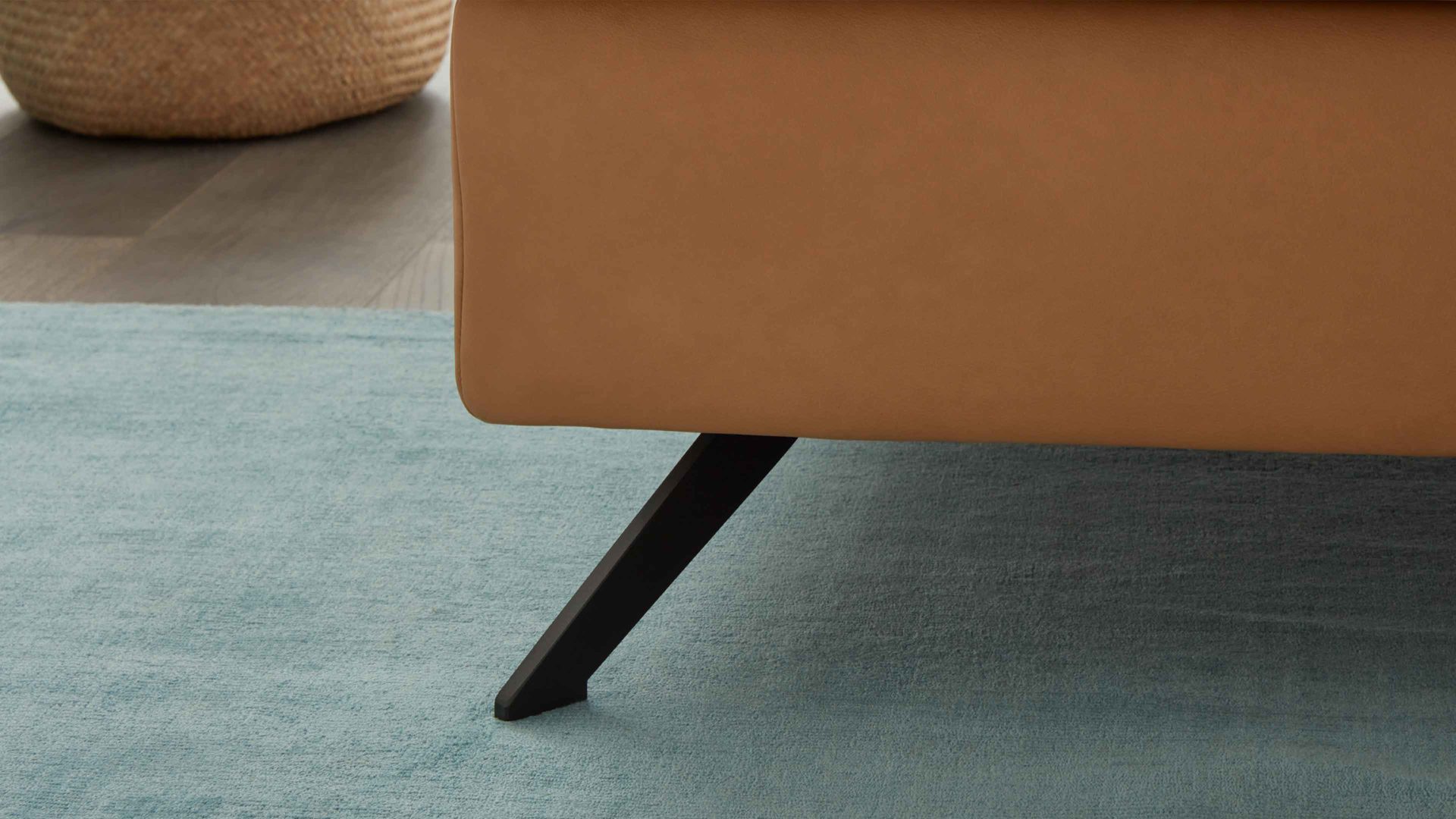 kurkumafarbenes LongLife-Leder Vivre & schwarze Metallfüße – Stellfläche ca. 347 x 176 cm