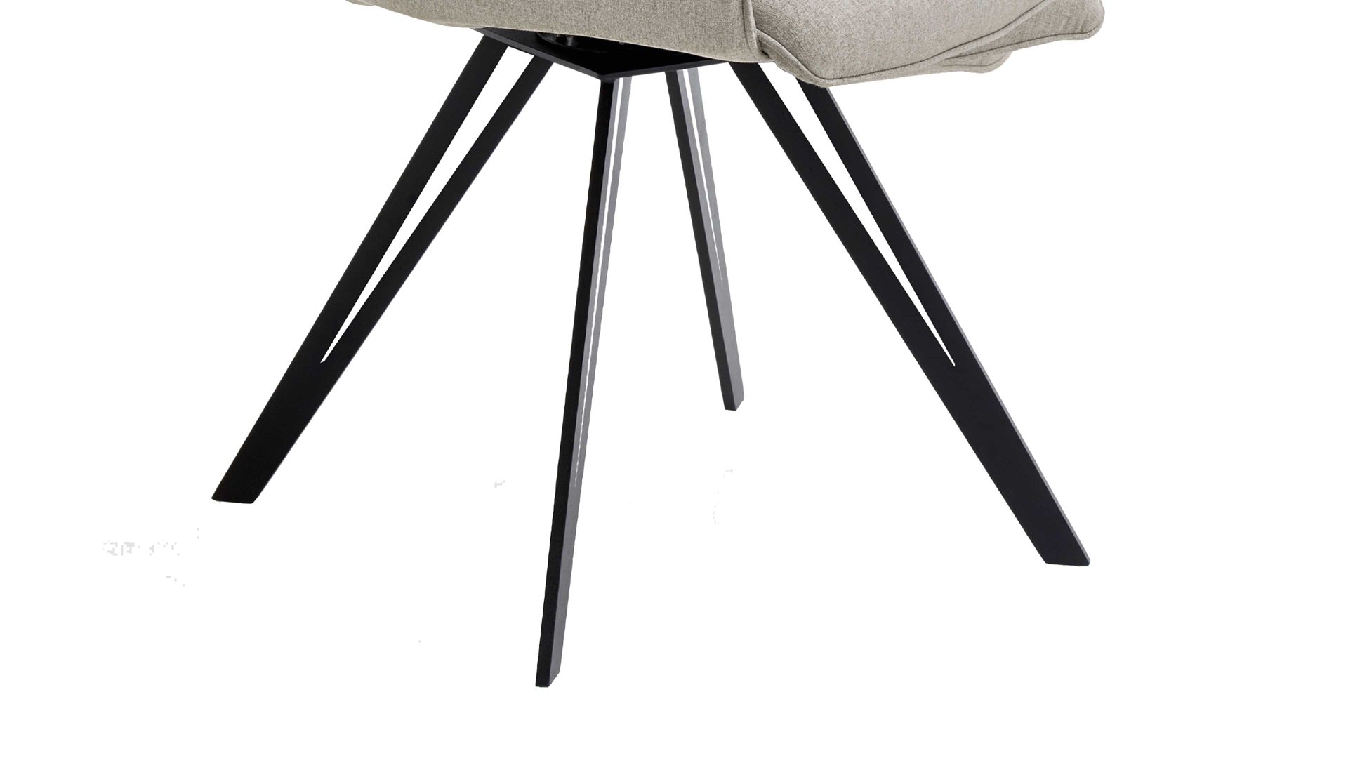 Er kombiniert einen silberfarbenen Webstoffbezug mit einem schwarz pulverbeschichteten Vierfuß-Flachstahlgestell. Letzteres sorgt für eine stabile Basis sowie für puristisch-elegantes Flair im Esszimmer. Dazu trägt auch der klassische Farbton des hochwertigen, angenehm weichen Stoffbezugs bei. Überdies unterstreicht die spezielle Formensprache des Gestells die originelle Ausstrahlung des Vierfußstuhls.