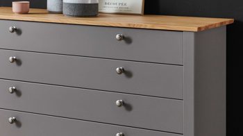 Die Maße der Schubkastenkommode betragen ca. 134,1 x 94,5 x 47 cm, wobei die Schubladenbreite ca. 120 cm beträgt. Dieses Möbelstück passt perfekt zu den anderen Produkten aus der Charleston Serie.