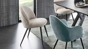 holzkohlefarbener Breitcordbezug und schwarz pulverbeschichtete Metallfüße