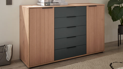 Eiche Bianco & Graphit - zwei Türen, fünf Schubladen, Breite ca. 141 cm