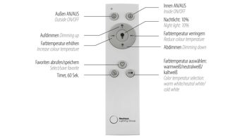 | Verstellbarkeit und Funktion: | drehbar Fernbedienung Memoryfunktion CCT | Lichtmanagement | |
