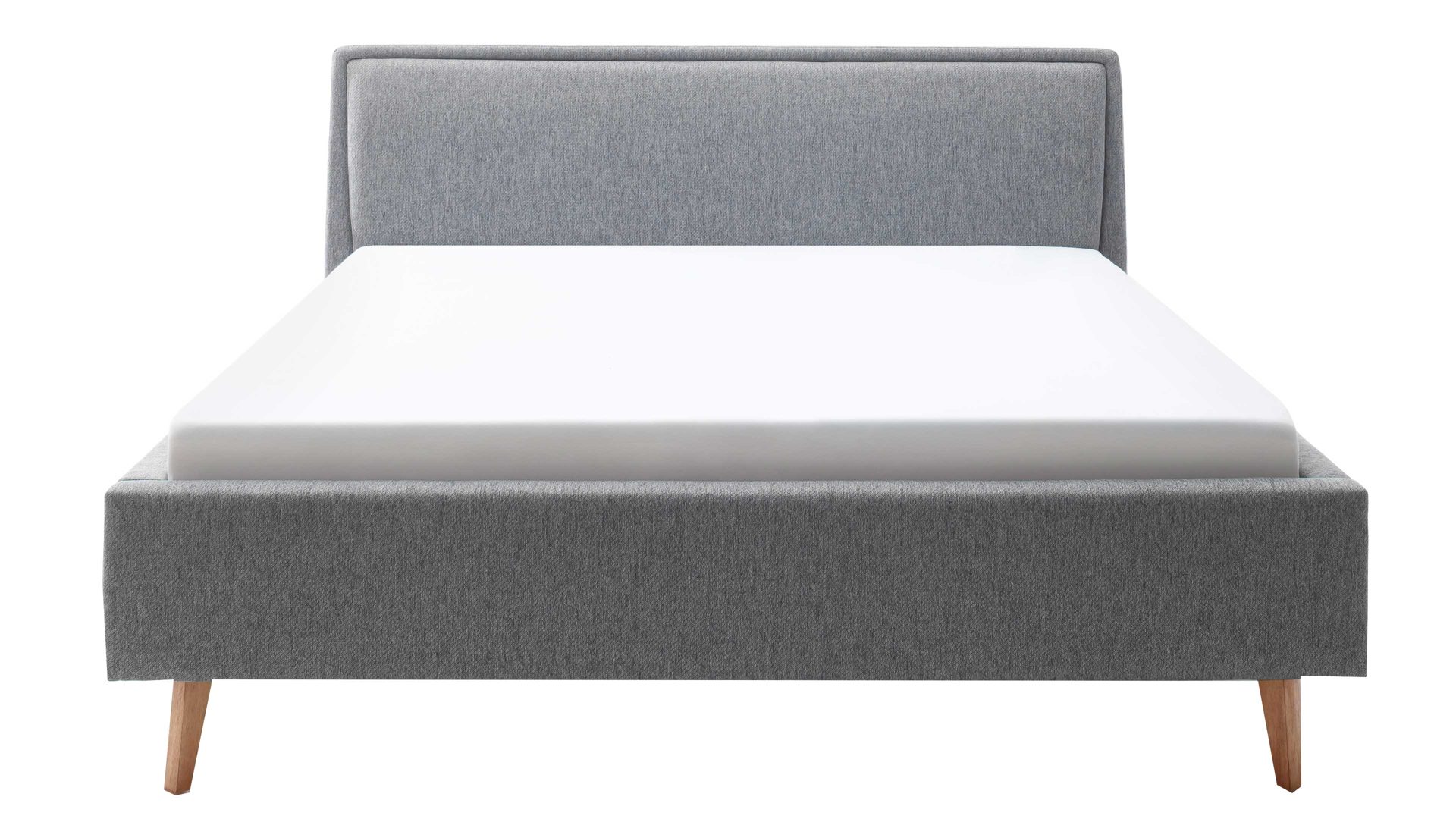 Das Polsterbettgestell Frieda mit Bettkasten verkörpert modernen Komfort. Mit dem grauen Stoffbezug und den eichefarbenen Holzfüßen präsentiert es sich elegant und gemütlich designt. Die Bettseiten sind genauso wie das Polsterkopfteil glatt bezogen. Letzteres ist eine angenehm weiche Rückenlehne, wenn Sie abends im Bett vor dem Schlafen noch entspannt in Ihrem Buch lesen oder fernsehen möchten.
