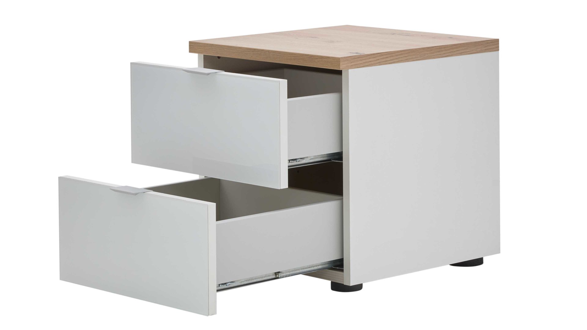 Nachtkommode aus der Interliving Kleiderschrank Serie 1208 – moderne Eleganz in Alpinweiß und Artisan-Eiche