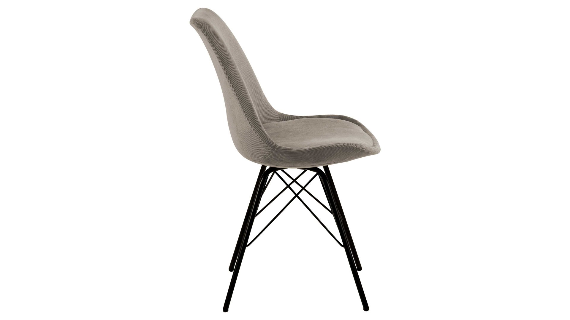 Als stabile, dabei aber wunderbar filigran designte Basis fungiert ein mattschwarz pulverbeschichtetes Stahldrahtgestell. Darauf befindet sich eine beige Sitzschale aus robustem Kunststoff. Sie ist rundherum mit Feincord bezogen, ebenfalls in warmem Beige. Der angesagte Feincordbezug überzeugt sowohl qualitativ als auch optisch und haptisch.