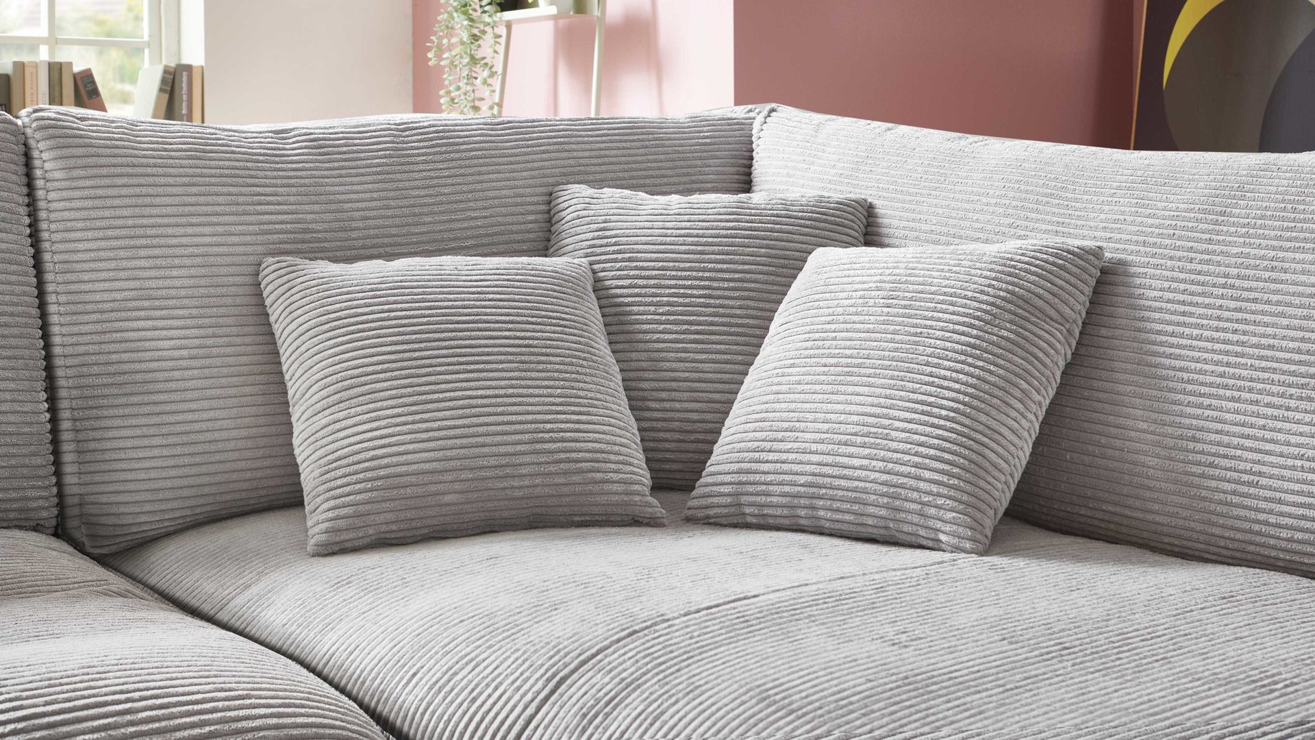 Besonders hervorzuheben sind die zahlreichen Highlights dieser Serie. Die losen Rückenkissen ermöglichen Ihnen individuellen Komfort und sorgen für eine persönliche Note. Zudem erhalten Sie die Sofaecke mit drei Zierkissen, die dem Raum eine zusätzliche Gemütlichkeit verleihen. Alle Kissen sind mit hochwertigem Schaumstoff gefüllt.