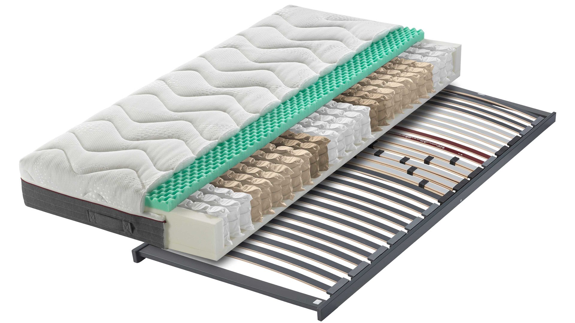 Das Interliving Matratzen-Set 1916 kombiniert die Taschenfederkernmatratze aus der Interliving Matratzen Serie 1922 im Härtegrad 2 mit dem stabilen, ergonomischen Lattenrost aus der Interliving Lattenrost Serie 1941. Auf der ca. 90 x 200 cm (BxL) großen Liegefläche entsteht ein durchdachtes Schlafsystem, das dir jede Nacht entspannten Liegekomfort bietet.
