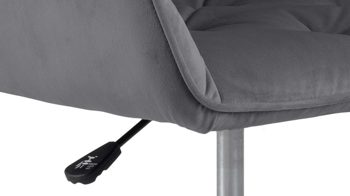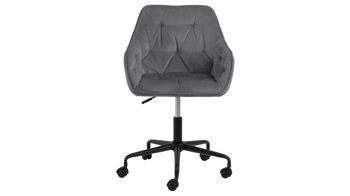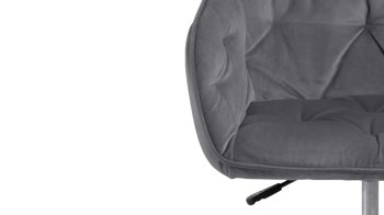 Dabei harmoniert der Drehstuhl in seiner sanften Formensprache mit zahlreichen Einrichtungsstilen: Dafür sorgt der dunkelgraue Samtbezug, der die gesamte Sitzschale inklusive der bequemen Armlehnen weich umhüllt. Das pulverbeschichtete Metall-Drehkreuz fließt in mattem Schwarz stimmig in das Gesamtbild ein.