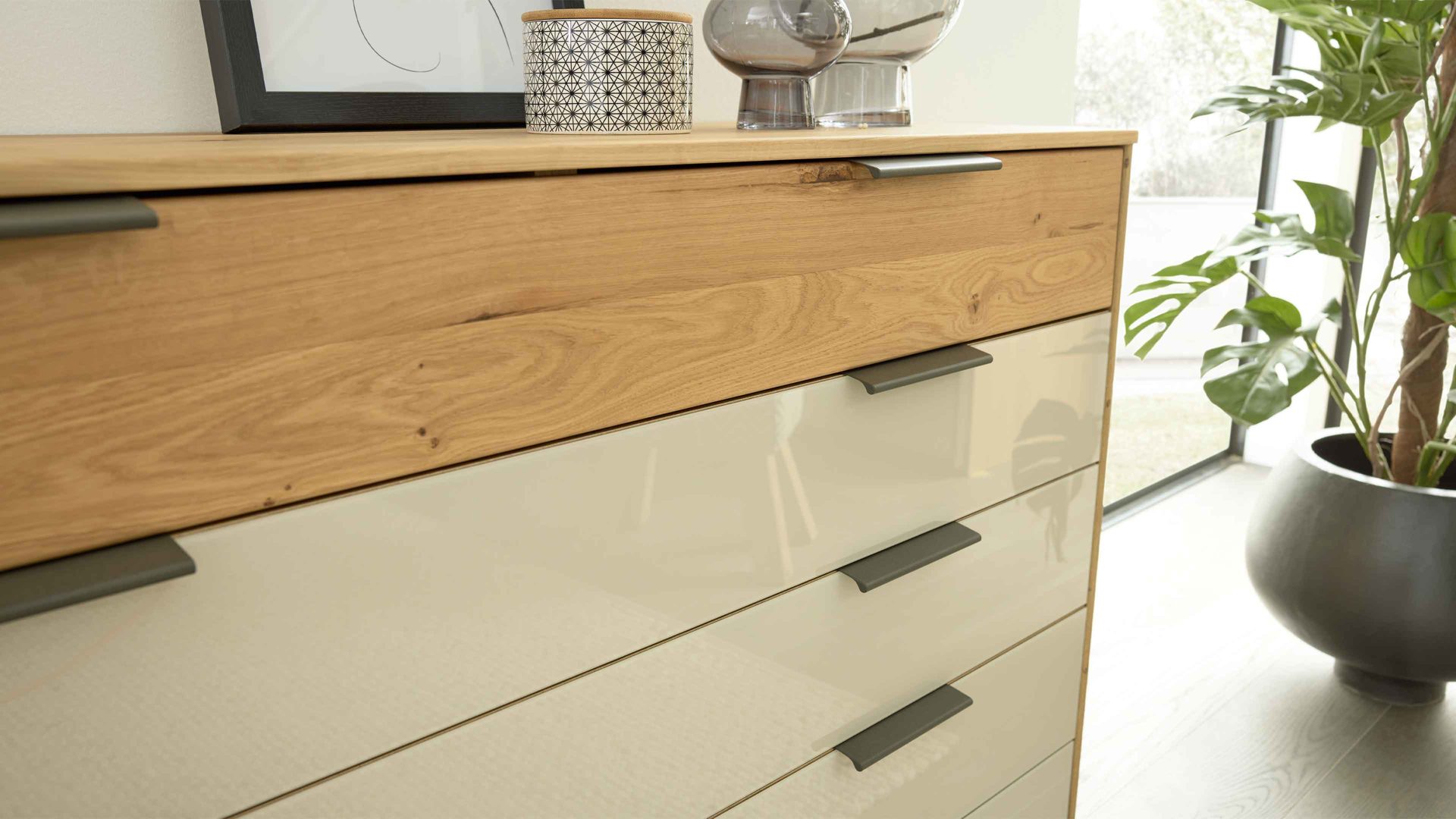 Graphit & Balkeneiche gehackt - vier Schubladen