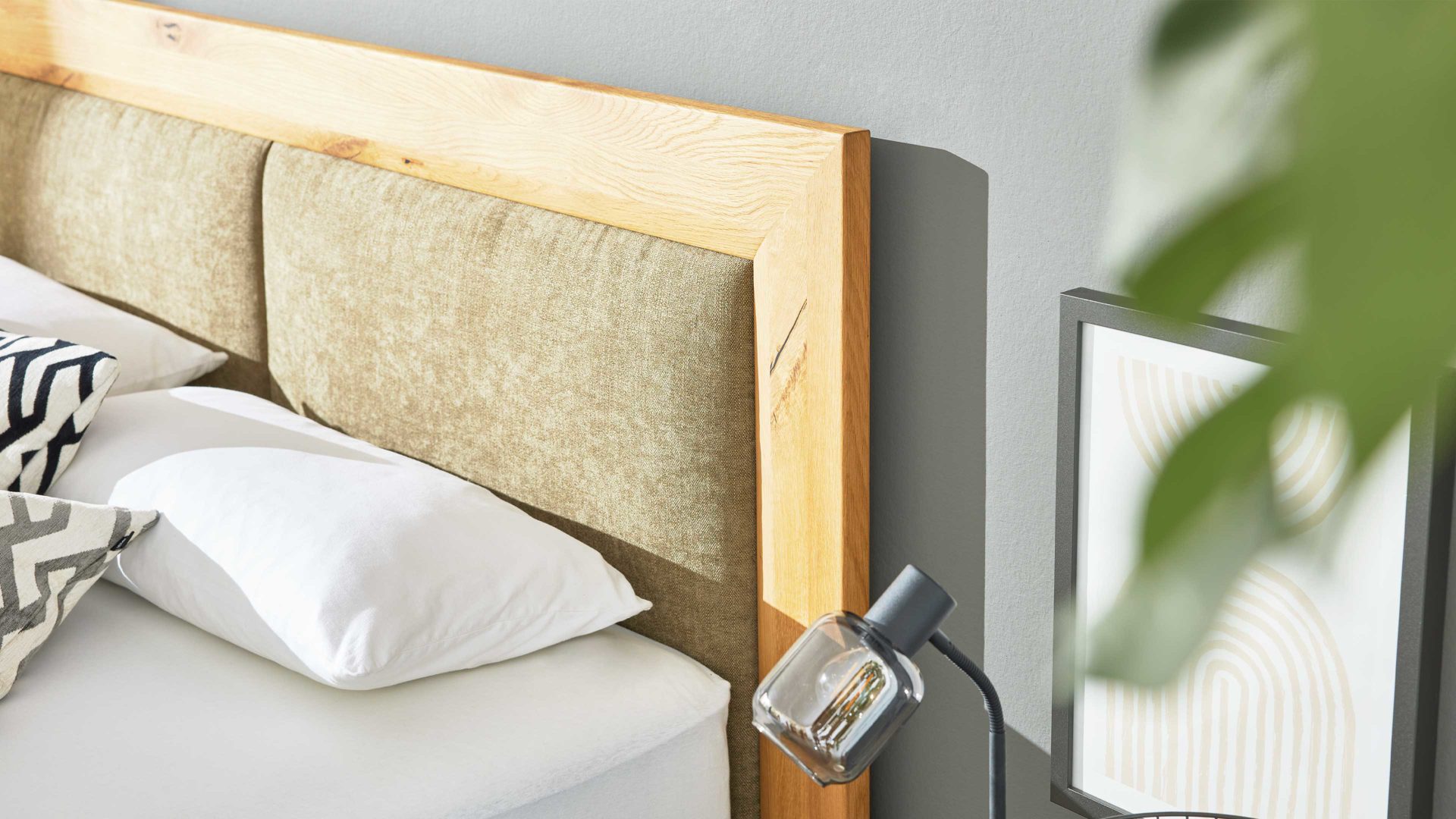 Schwebeleicht träumen – das Interliving Boxspringbett Serie 1415 in Olivgrün und Wildeiche