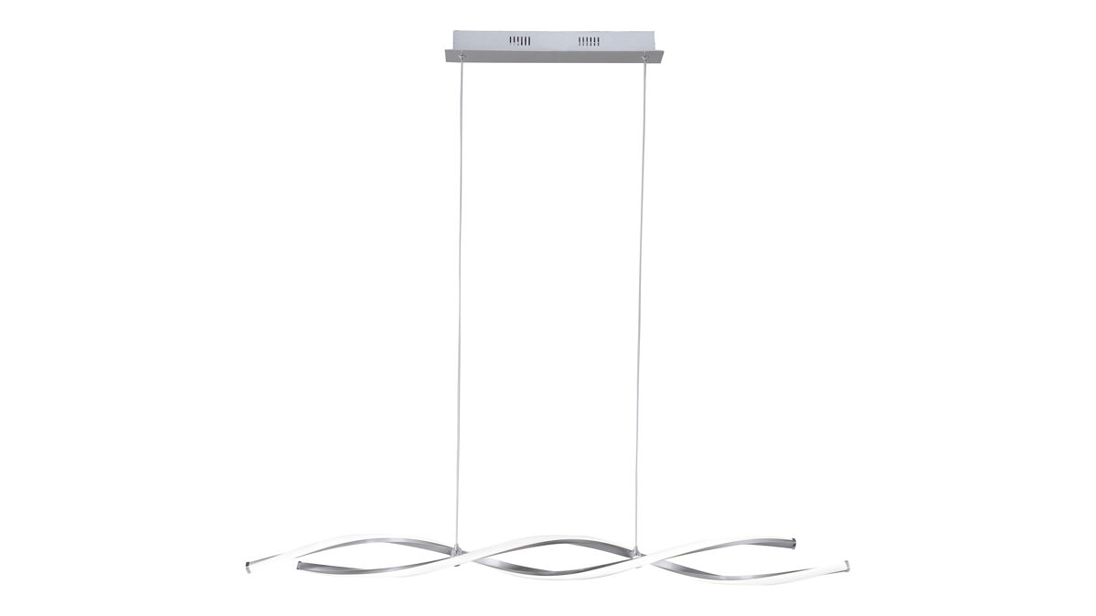 Dank des Acryls scheint das Licht zudem besonders hell und gleichzeitig angenehm. In der Länge misst die Pendellampe ca. 107 cm, in der Breite ca. 9 cm und von der Decke hängt sie mit ca. 120 cm. Im Lieferumfang enthalten sind die zwei LED-Boards mit jeweils 10,2 Watt, 925 Lumen und 3.000 Kelvin.