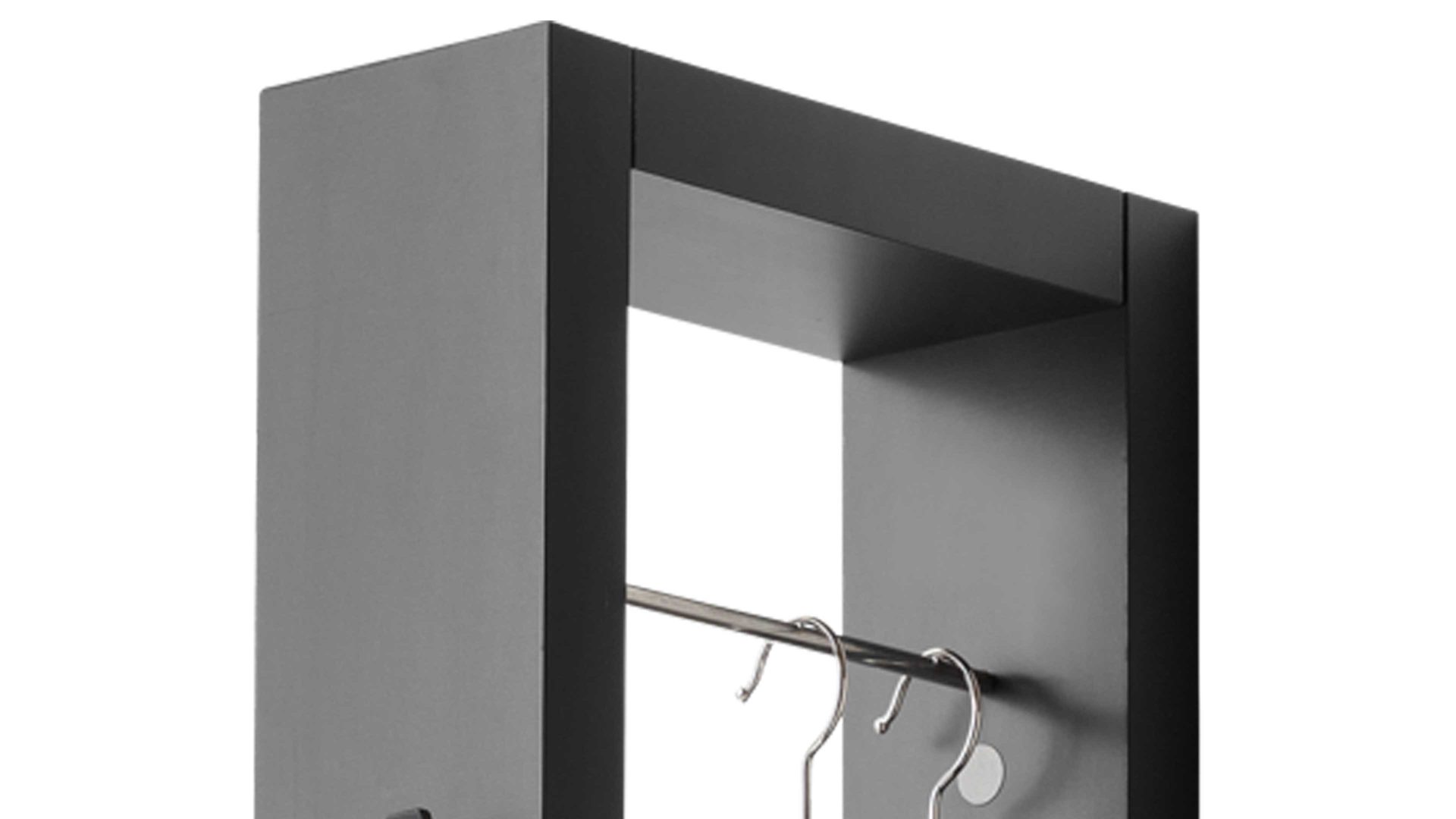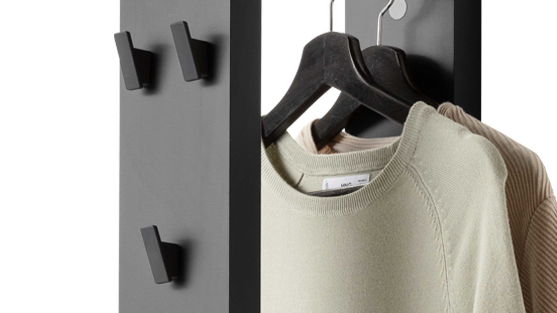Die chromfarbene Kleiderstange sowie die schwarzen Garderobenhaken runden das stilvolle Design harmonisch ab. Dank der robusten Materialien ist die Flurgarderobe langlebig und außerdem angenehm pflegeleicht.