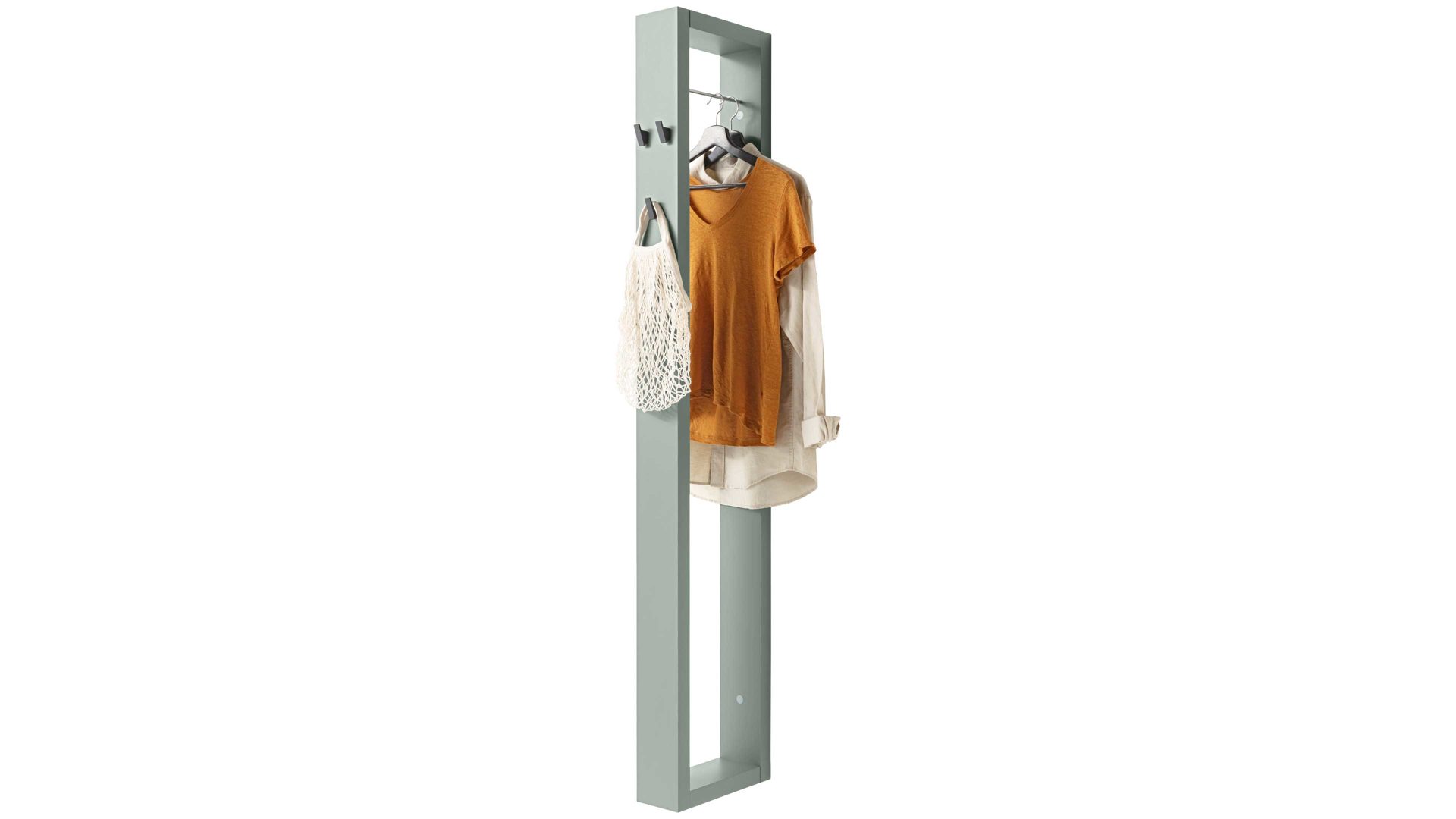 Auf der Kleiderstange und den drei Garderobenhaken können Sie Jacken, Mäntel und andere Kleidung, aber auch nützliche Utensilien wie Schlüssel oder Schirme aufhängen. Darüber hinaus bieten der obere und der untere Boden etwas Platz für kleinere Gegenstände. Die Maße des stabilen Garderobenpaneels betragen ca. 13 x 172 x 32 cm (BxHxT).
