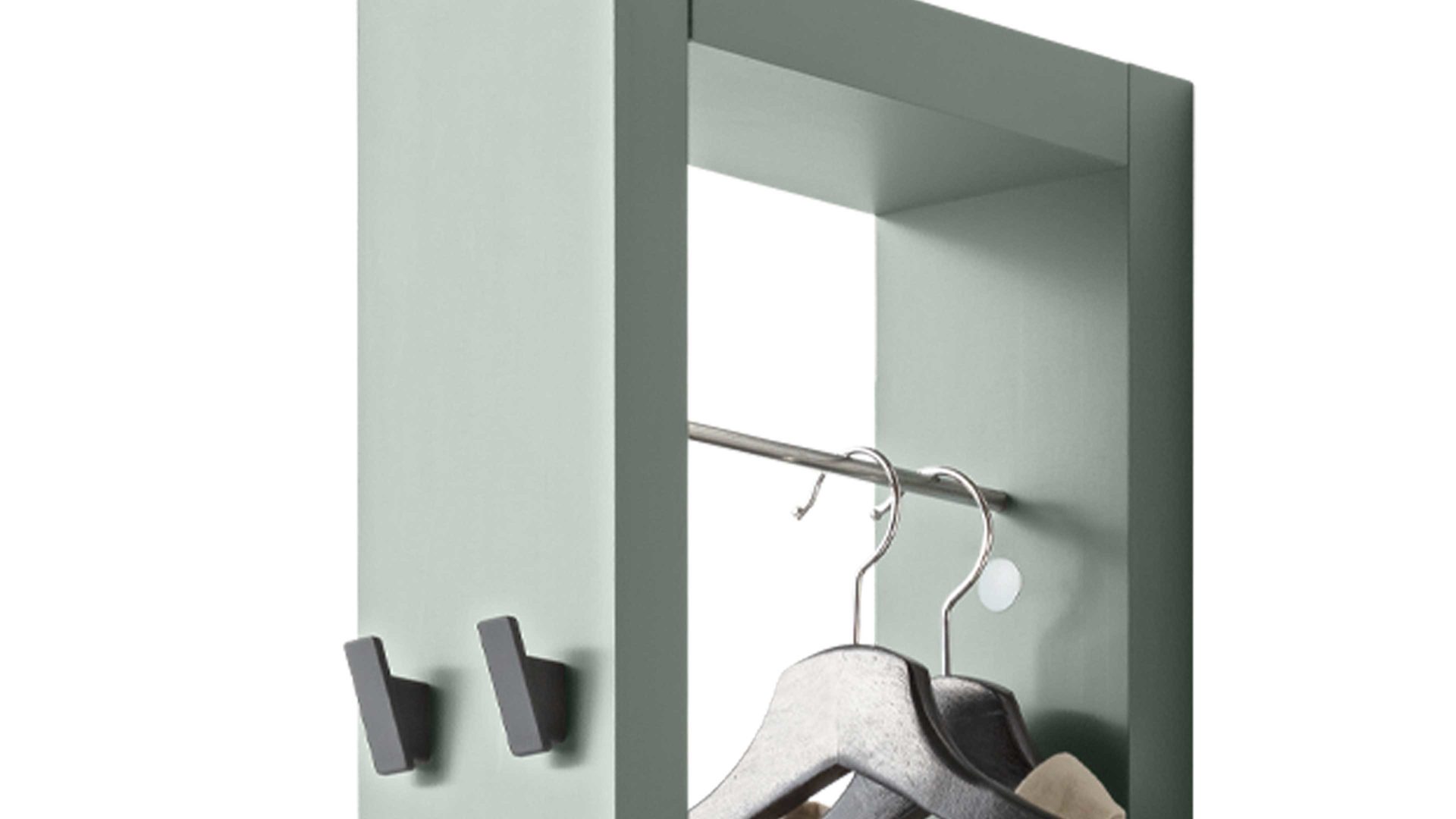 Mit ihren Mattlackoberflächen in zartem Piniengrün verkörpert die Wandgarderobe Bonnie moderne Eleganz.