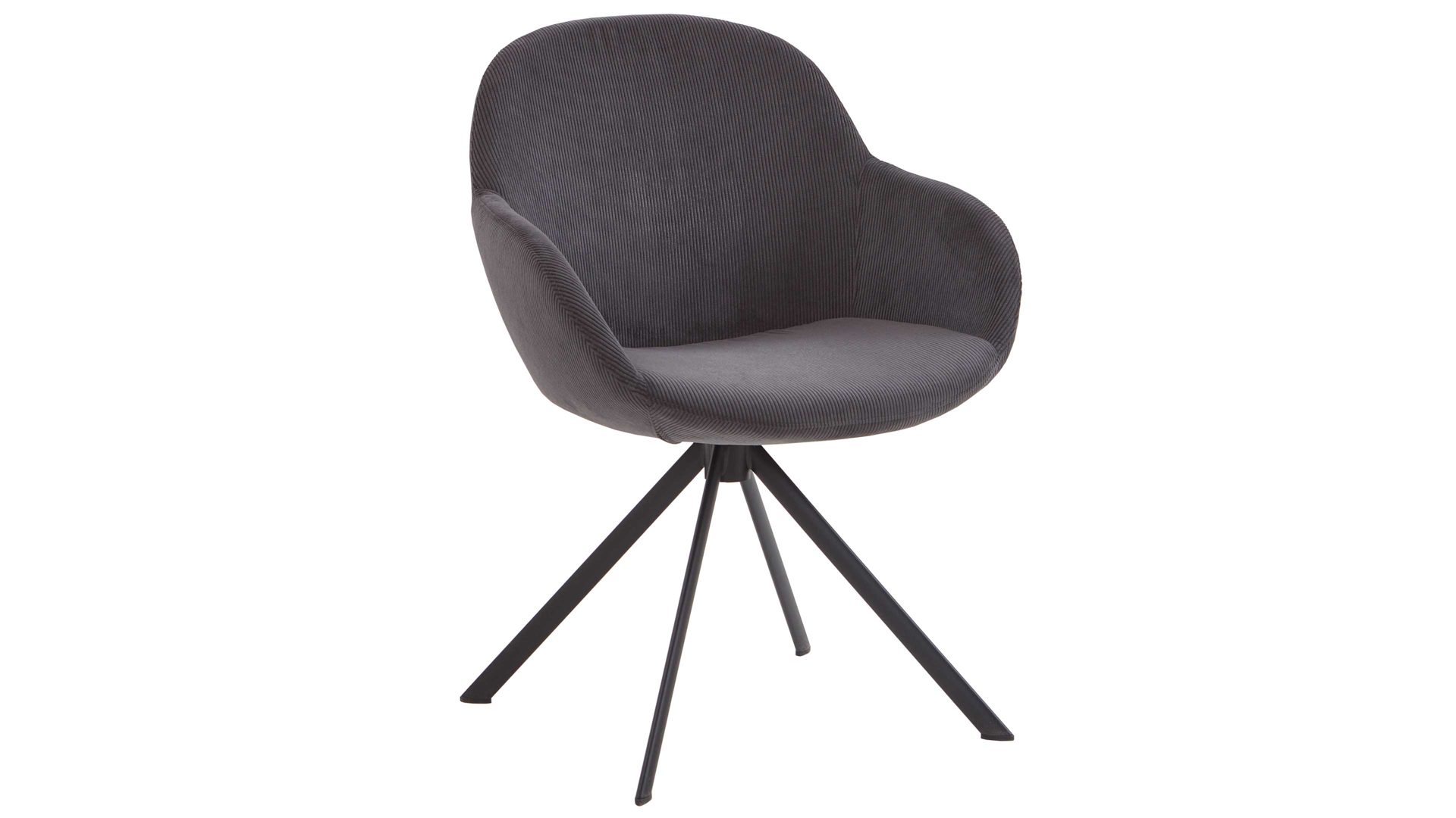 Der hochwertige NIEHOFF Armlehnstuhl Dacapo verkörpert moderne Eleganz und Gemütlichkeit. Mit dem mattschwarz lackierten Stativgestell aus robustem Eisen sowie dem trendigen anthrazitfarbenen Cordbezug überzeugt er sowohl optisch als auch qualitativ. Dank der Ergo-Schale mit Formschaum bietet der Designerstuhl für das Esszimmer extra hohen Sitzkomfort.