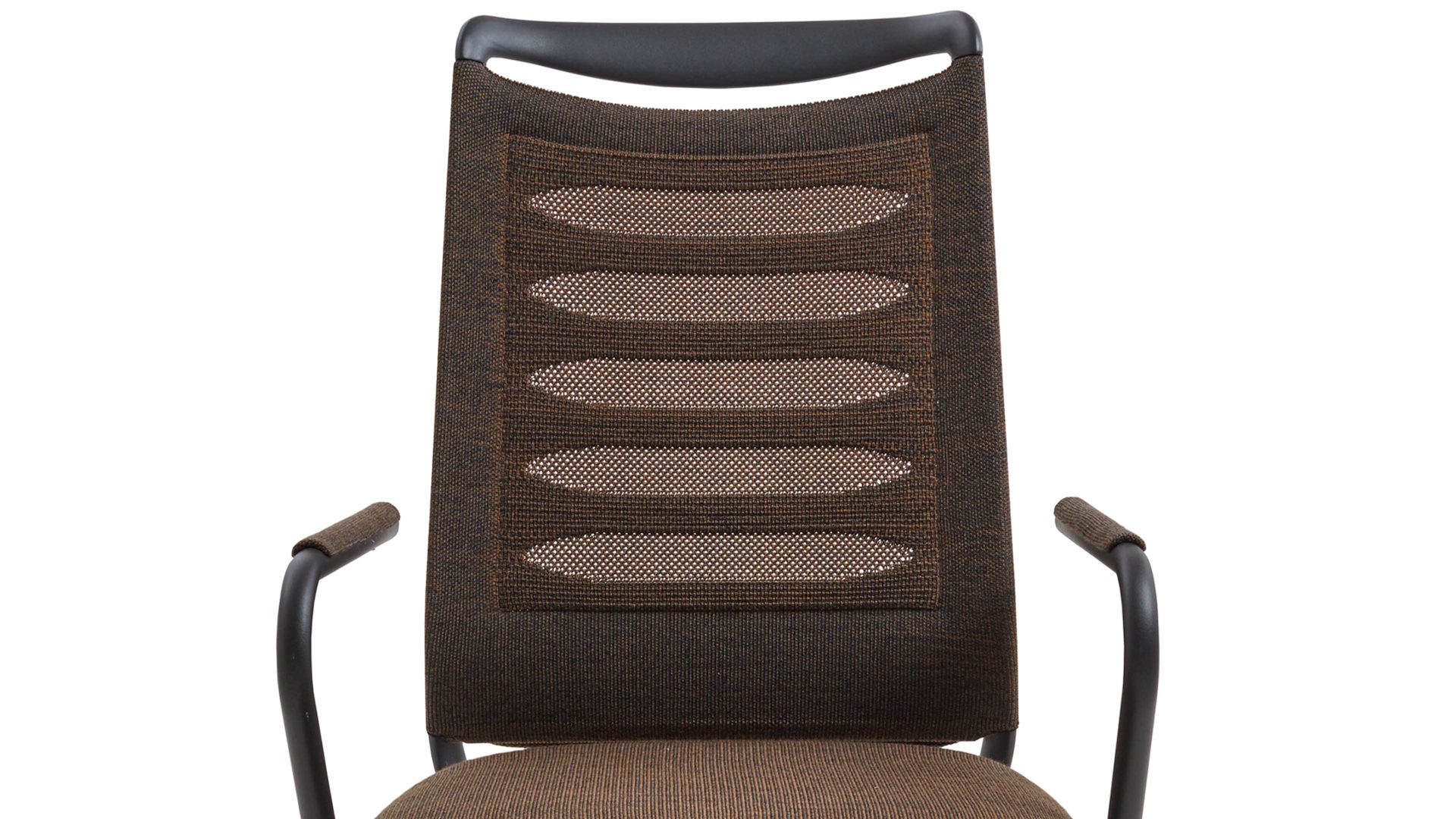 Der VENJAKOB Polsterstuhl Lilli 3000 mit Armlehnen besteht aus hervorragenden Materialien, ist stilvoll designt und bietet nicht zuletzt dank der Drehfunktion hohen Komfort. Er kombiniert ein matt anthrazitfarbenes Ellipsenrohr-Stativgestell aus Metall mit einem bronzefarbenen Nylonbezug und einer bequemen Polsterung.
