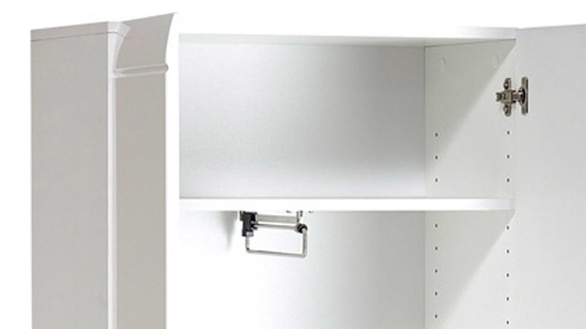 Der geräumige Garderobenschrank aus der Serie Adana ist nicht nur ein optisch überzeugendes Dielenmöbel, sondern überzeugt auch mit seinen inneren Werten. Fünf Böden und eine ausziehbare Kleiderstange bieten reichlich Platz für ihre Garderobe. Die weißen, MDF-tiefgezogenen Hochglanzfronten und die schicken Steggriffe vollenden das edle Design.