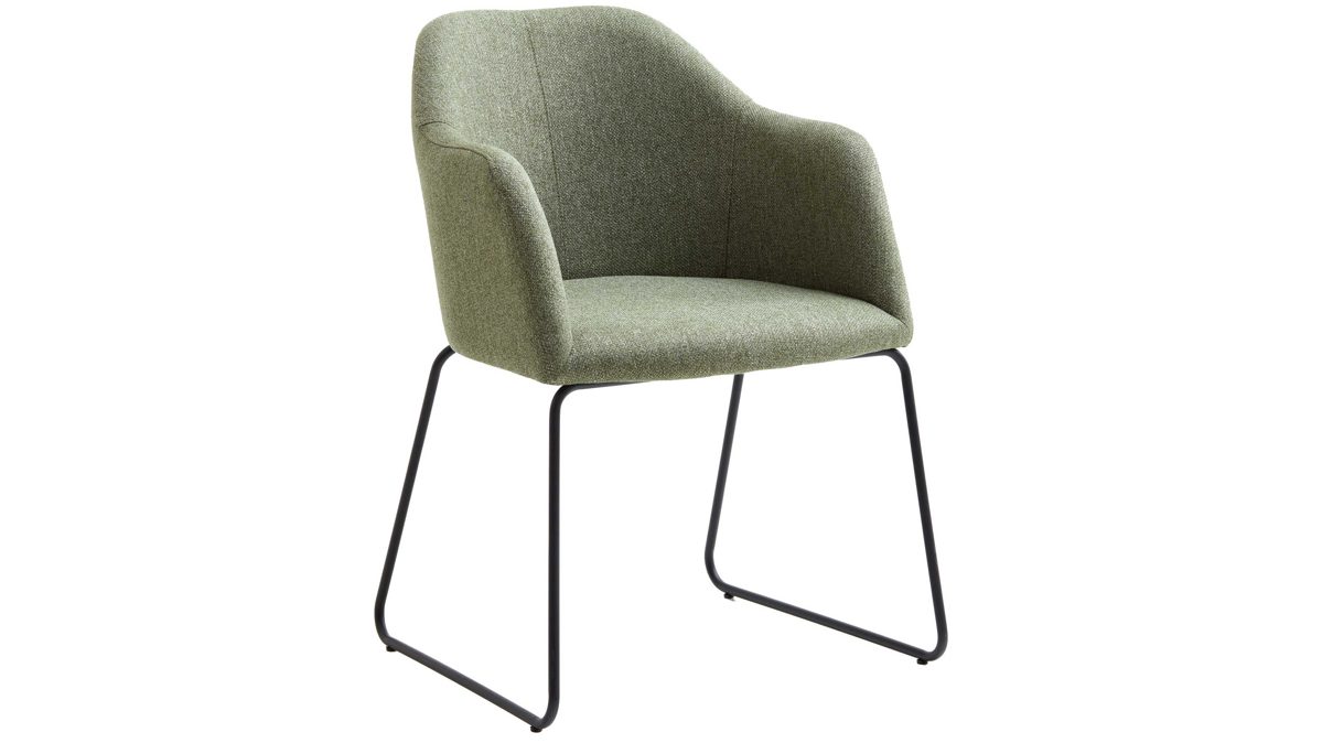 Darüber hinaus weiß er in puncto Komfort zu überzeugen. Ein schwarzes Stahldraht-Kufengestell bildet die robuste Basis. Das widerstandsfähige Material sorgt für die nötige Stabilität und die klassische Farbgebung bringt edles Flair in den Raum. Attraktiv abgerundet wird der Polsterstuhl durch den blassgrünen Webstoffbezug. Die außergewöhnliche Farbe wirkt elegant und schafft durch die helle Nuance einen interessanten Kontrast zum Gestell. Einen feinen Akzent setzt die Steppnaht im Rücken des Schalensitzes.