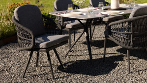 Die Tischplatte aus grauem gesintertem Stein (Sintered Stone) bietet nicht nur eine edle Optik, sondern überzeugt durch extreme Belastbarkeit. Kratzfest, stoßfest, UV- und farbbeständig sowie wetterfest – das Material ist wie gemacht für den dauerhaften Einsatz im Freien. Damit eignet sich der Gartentisch ideal für wechselnde Wetterbedingungen und intensive Nutzung.