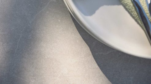 Die Tischplatte aus hochwertigem Sintered Stone wurde speziell für den Outdoor-Bereich entwickelt. Das Material ist extrem widerstandsfähig, kratz- und stoßfest, UV- und farbbeständig sowie komplett wetterfest – ideal für den ganzjährigen Einsatz im Freien. Ein Funktionstisch, der sowohl optisch als auch qualitativ überzeugt.