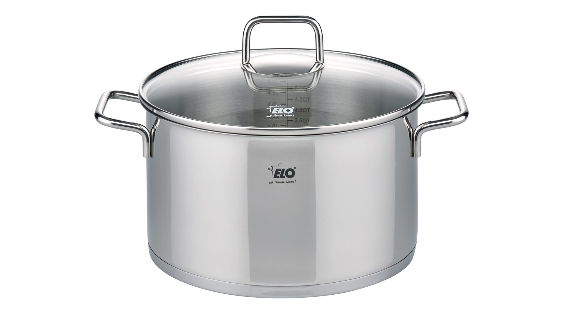 Die ELO® Servierpfanne Citrin mit Glasdeckel macht es möglich. Sie besteht aus 18/8 Edelstahl und verfügt über einen verkapselten Hartlötboden. Ihre Topfinnenseite ist satiniert und weist eine praktische Literskala auf. Die Topfaußenseite ist hochglanzpoliert sowie mit zwei angeschweißten Edelstahl-Drahtgriffen ausgestattet.