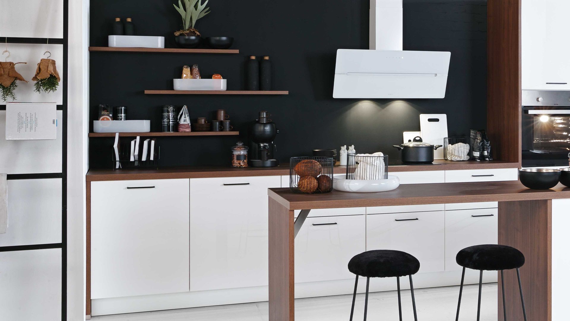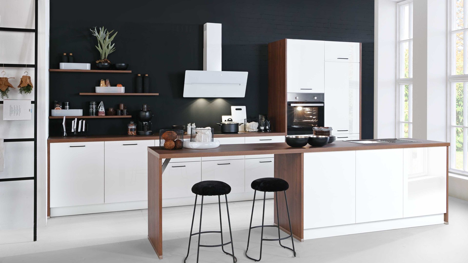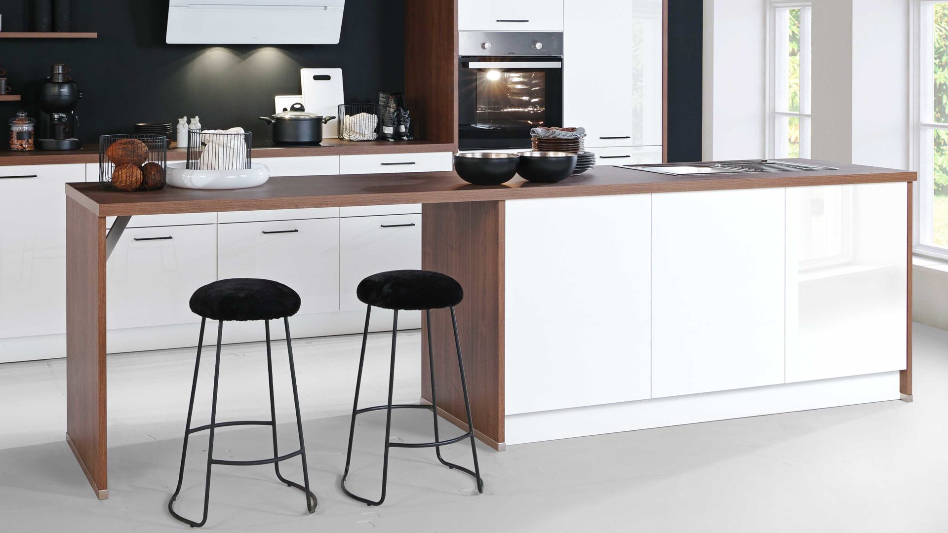 Da die ca. 430 cm lange Küchenzeile und die große Kücheninsel mit einer Länge von ca. 320 cm zahlreiche Schränke und Auszüge beherbergen, steht Ihnen jede Menge Stauraum für Lebensmittel, Geschirr und andere Küchenutensilien zur Verfügung. Auf den offenen Regalböden setzen Sie dekorative Accessoires perfekt in Szene. Ein absolutes Highlight bildet auch der einladende Ansetztisch.