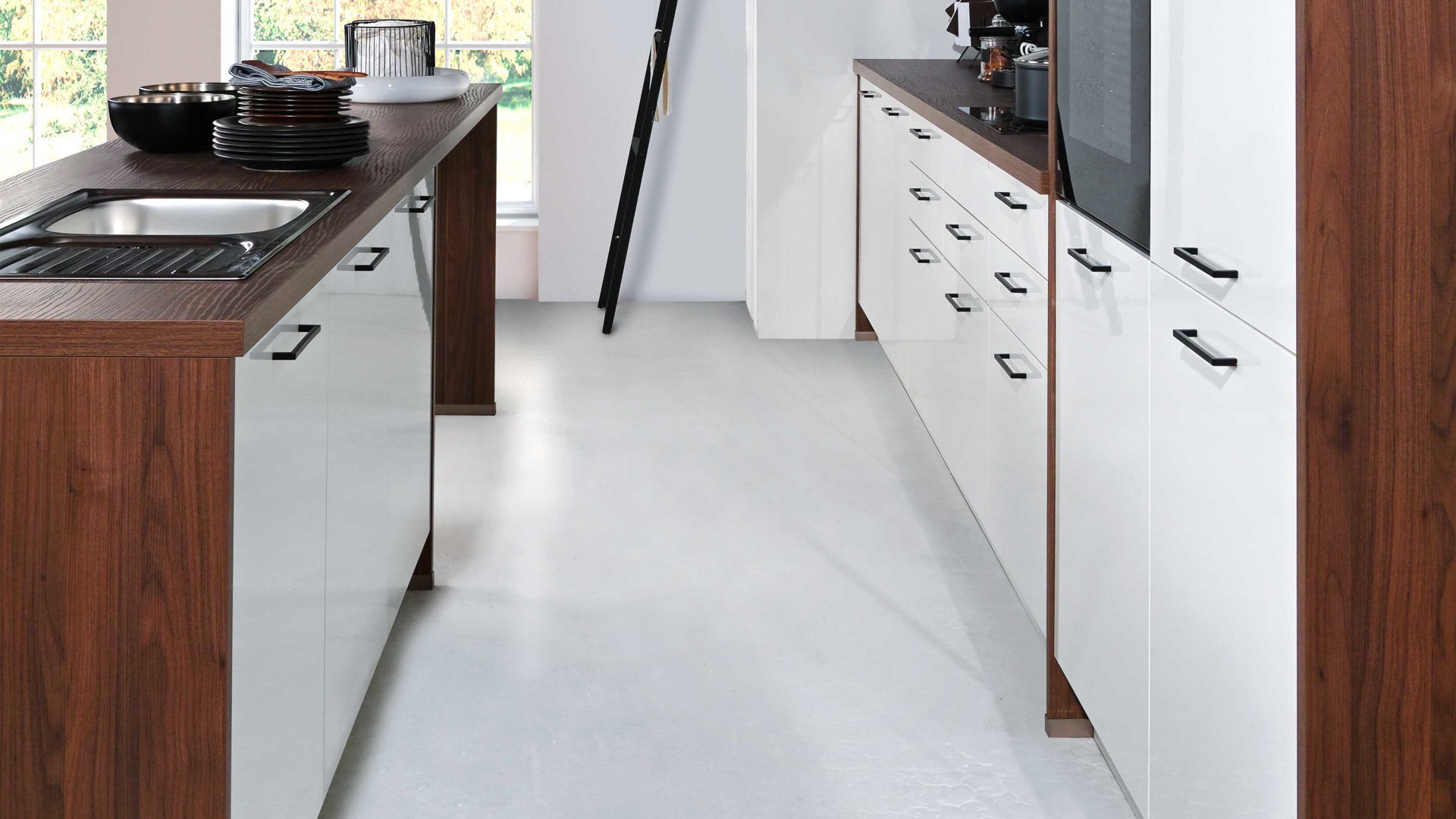 Hinzu kommt eine hochwertige Edelstahl-Einbauspüle. Optional können Sie die Küche Made in Germany auch mit einem praktischen Geschirrspüler erweitern.