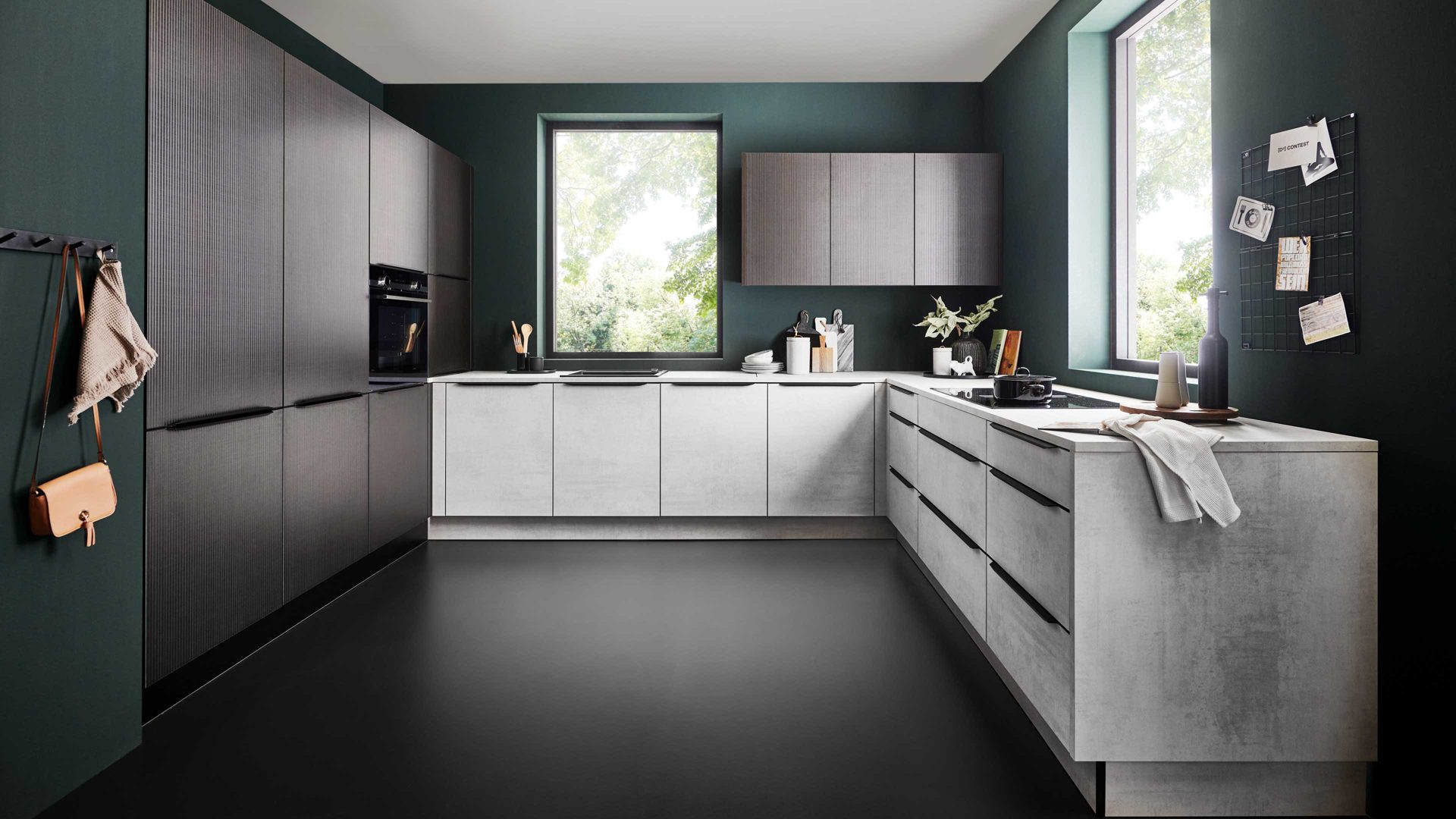 Moderner Materialmix in Betonoptik und Holzstruktur - nolte® Einbauküche Stone