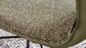 Ergänzt wird die Essgruppe durch vier Polsterstühle, die einen spannenden Materialmix bieten: außen jadefarbenes Leder, innen moosfarben melierter Webstoff – stylish, modern und angenehm weich. Auch hier sorgen die Steppnaht in der Rückenlehne und das umbragrau pulverbeschichtete Metall-Vierfußgestell für ein harmonisches Gesamtbild. Mit ca. 48 x 91 x 61 cm (BxHxT) sowie Sitzhöhe ca. 48 cm und Sitztiefe ca. 43 cm fügen sie sich perfekt ein.